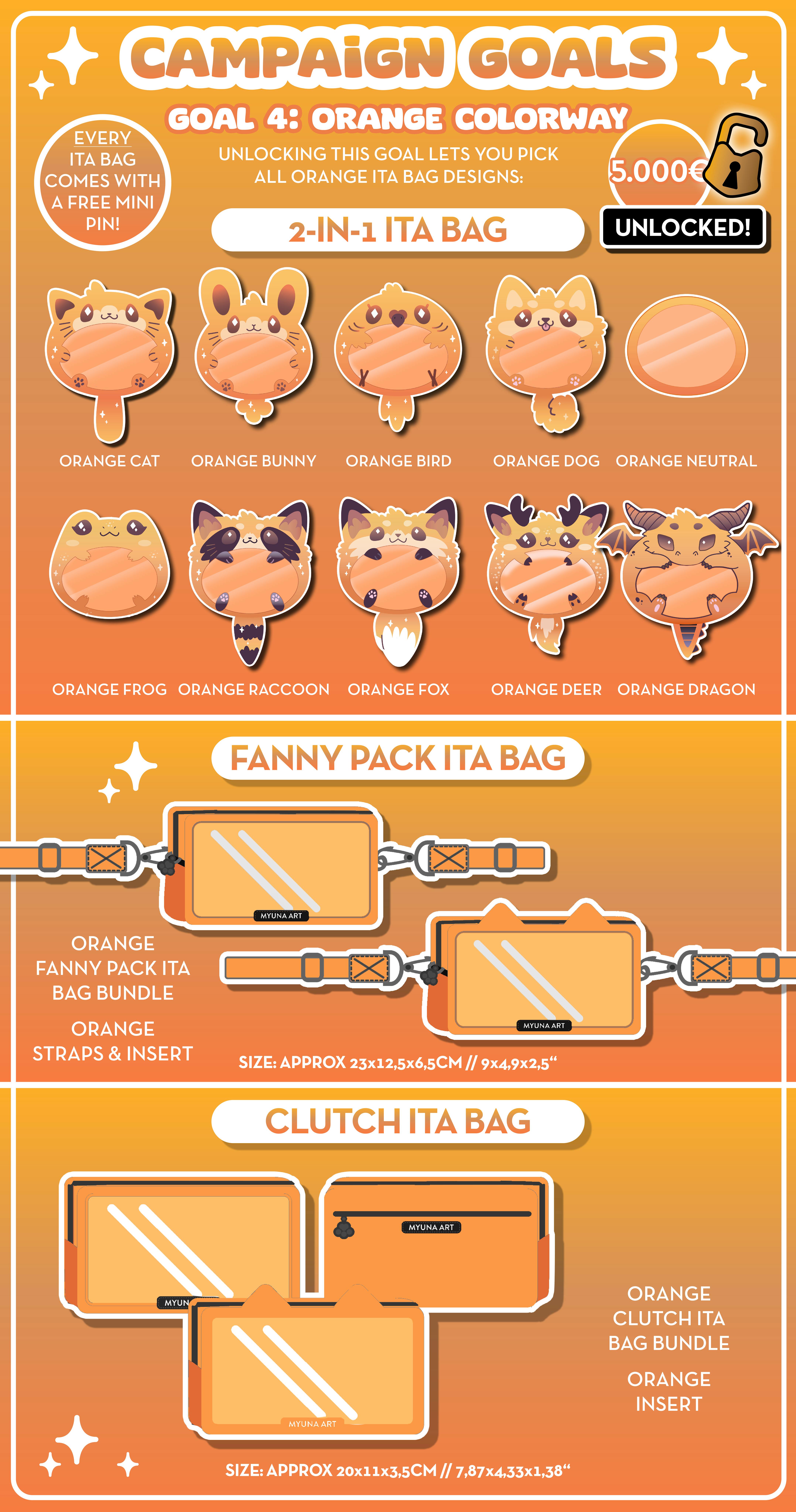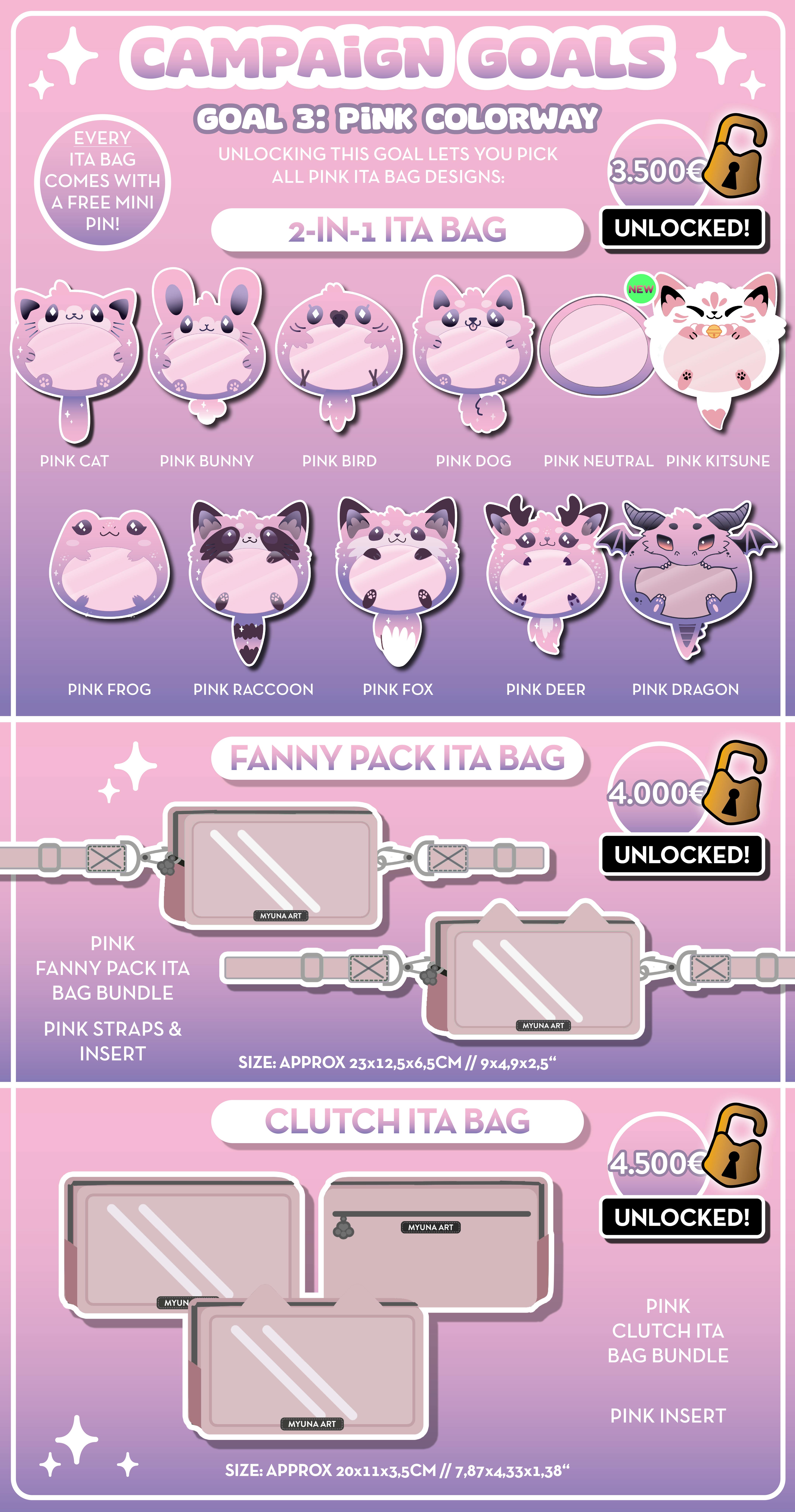 Pledge now & pay later! You can choose ANY unlocked Ita Bag & hard enamel pin once the campaign ends! Any profit will be used to fund secret stretchgoals and future pin projects.