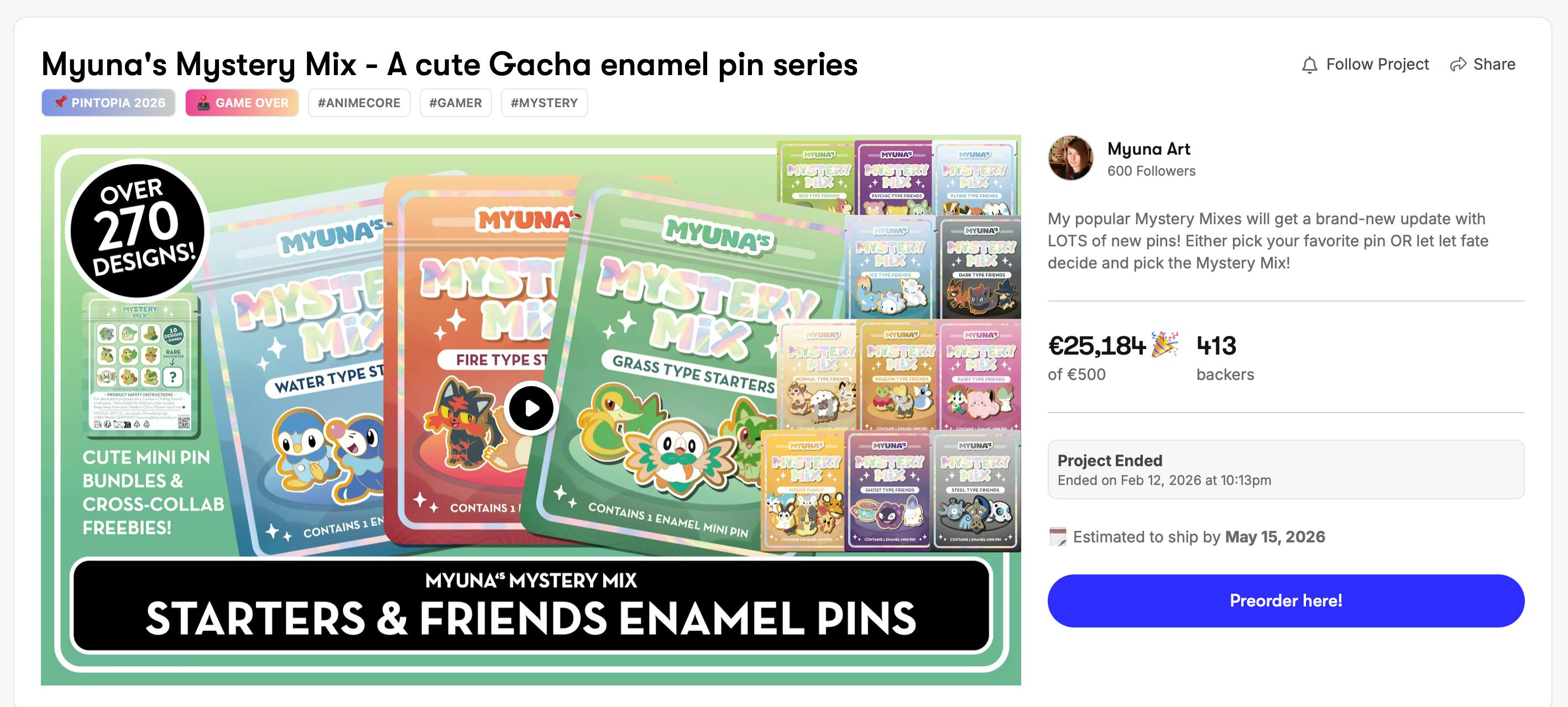 Keep in mind that the mystery mixes will become more expensive after the end of the campaign/pre-order phase (€12 instead of €10 and the specific pins €16 instead of €14).