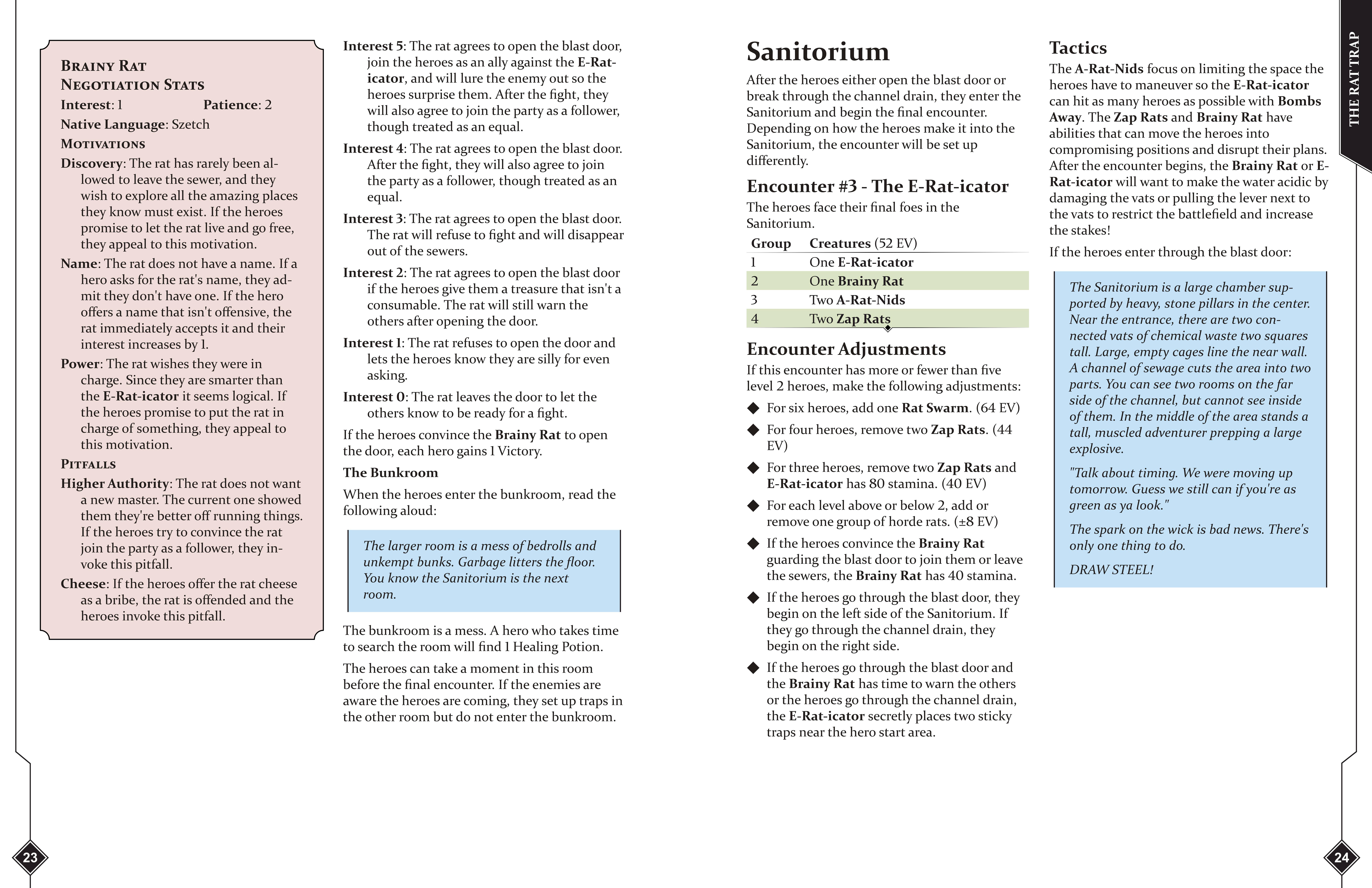 A monster pack with two short adventures for Draw Steel. 14 new rats, 1 retainer, The Rat Trap! and The Upset Tower! adventures, plus three custom treasures and two new titles!