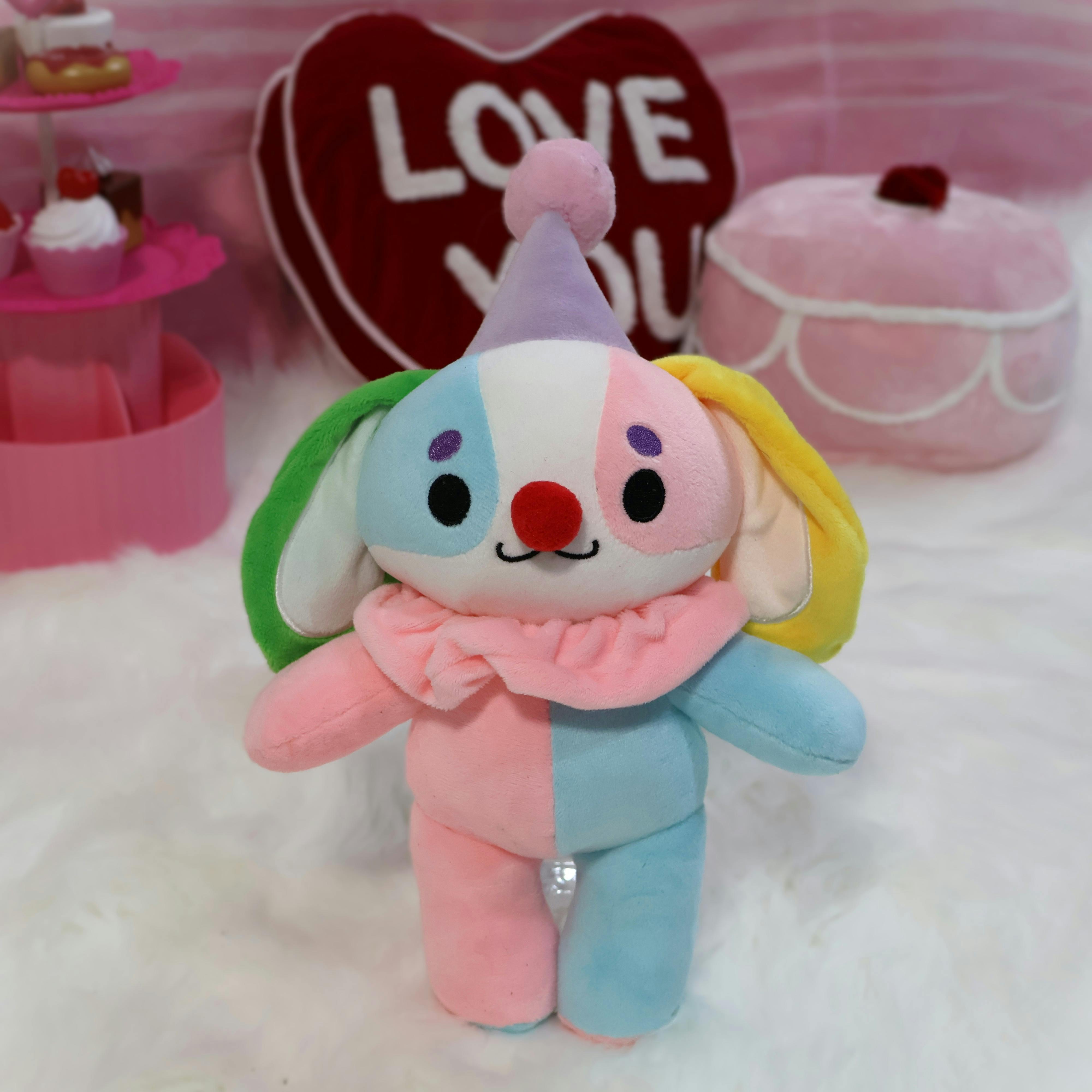 Get ready for the Silly Circus world of pins, stickers, keychains, and plushies inspired by the circus aesthetic and the cuteness of Kemonokinz. Expect clowns, ringmasters, jugglers, and more! Meet the clown puppy! It’s 13” tall from the top of the Pom Pom to the foot 💜