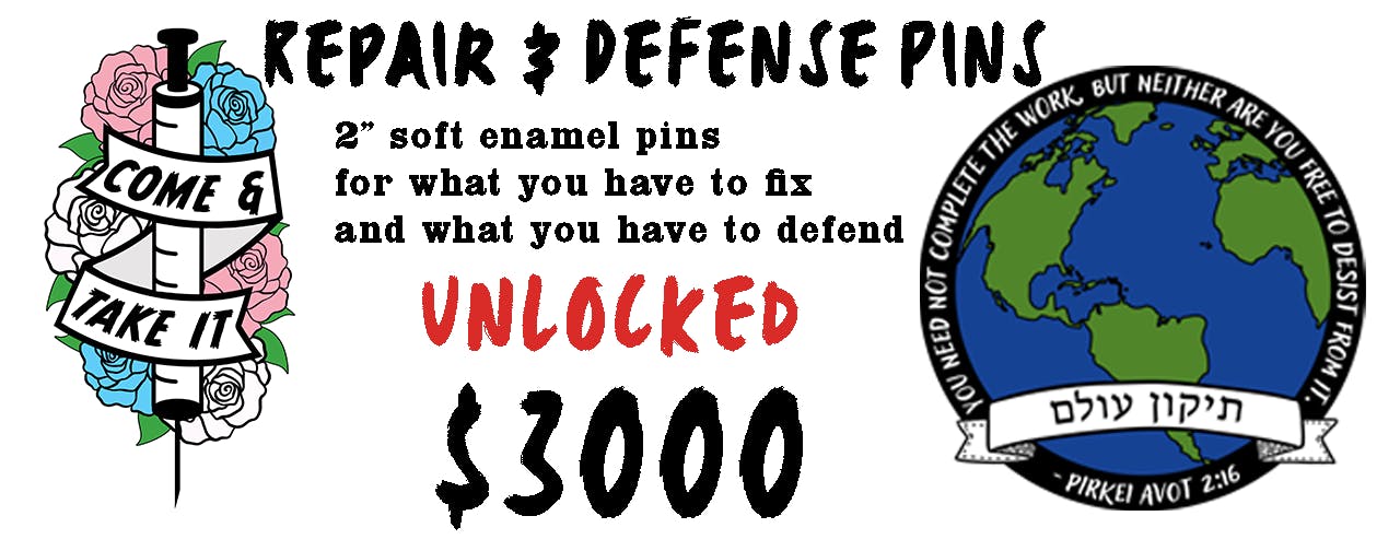 Come And Take It, Bread & Roses, Tikkun Olam Pins: 2" in longest dimension