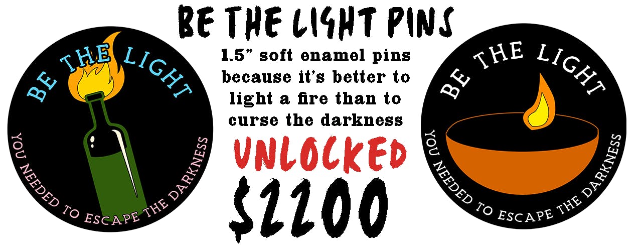 Pledge for all of the pin designs you want - locked stretch goals only unlock via pledges, after all. Nothing stinks worse than missing that last stretch goal by a hair.