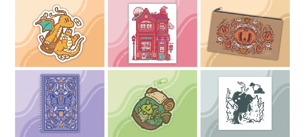 This collection features 4 standard pins and 2 premium pins, as well as a collection of stickers and keychains of the main designs. I hope you like them!
