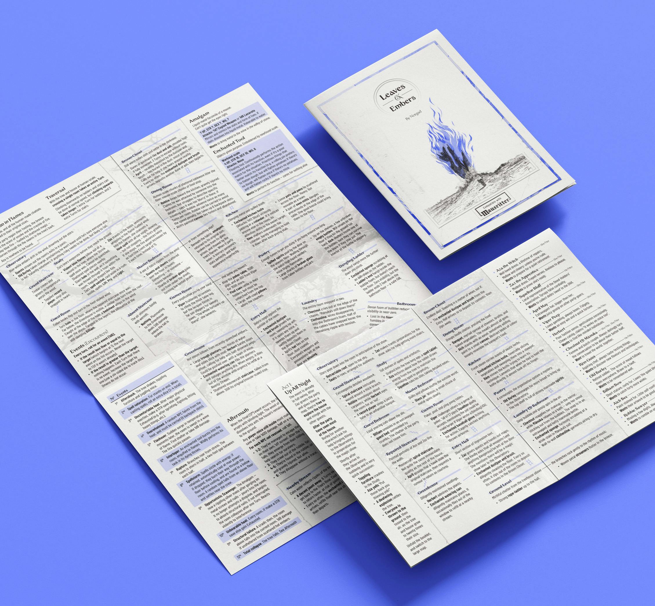 The good news is that Roach Motel is now fully out the door; there's no more work left to do on it at all (so it can't take up any of my time). So, actual full attention on Leaves & Embers; the last unfinished module of the bundle. Even with the setback, I still expect to get everything ready to print in March.