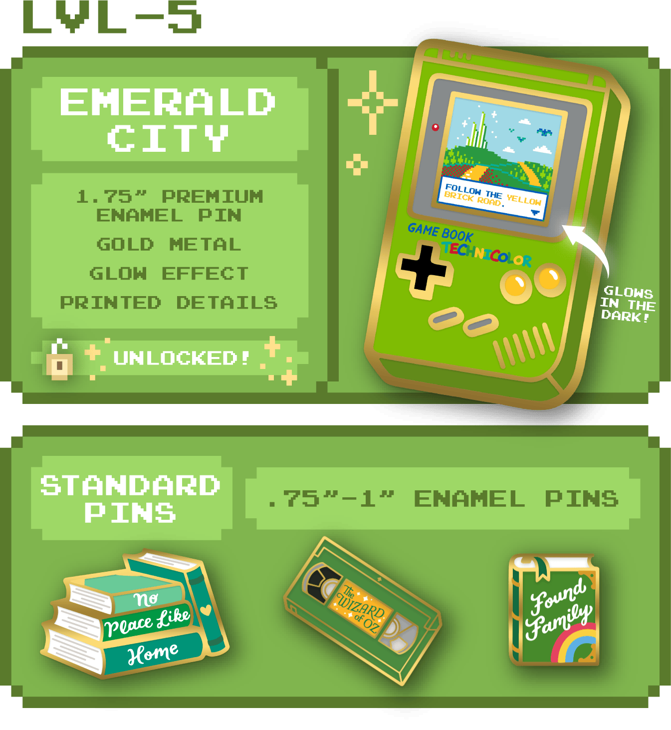 We're Dylan and Rossin, creators of Oddment & Tweak - a New York-based, queer-owned business. We've been making pins since 2017 and have created over 500 designs. We're excited to return for our sixth crowdfunding campaign with Level Up -a collection of nostalgically bookish enamel pins!