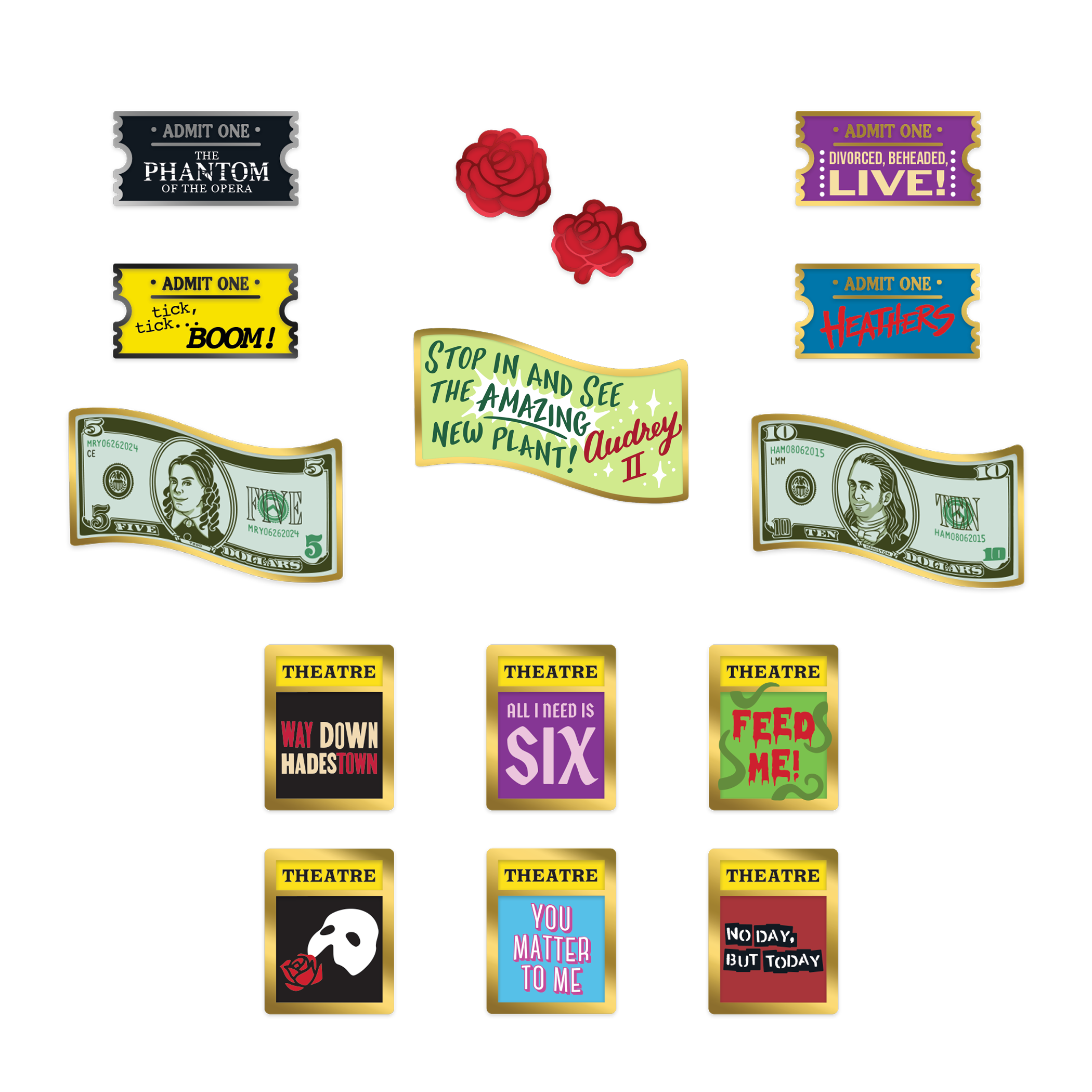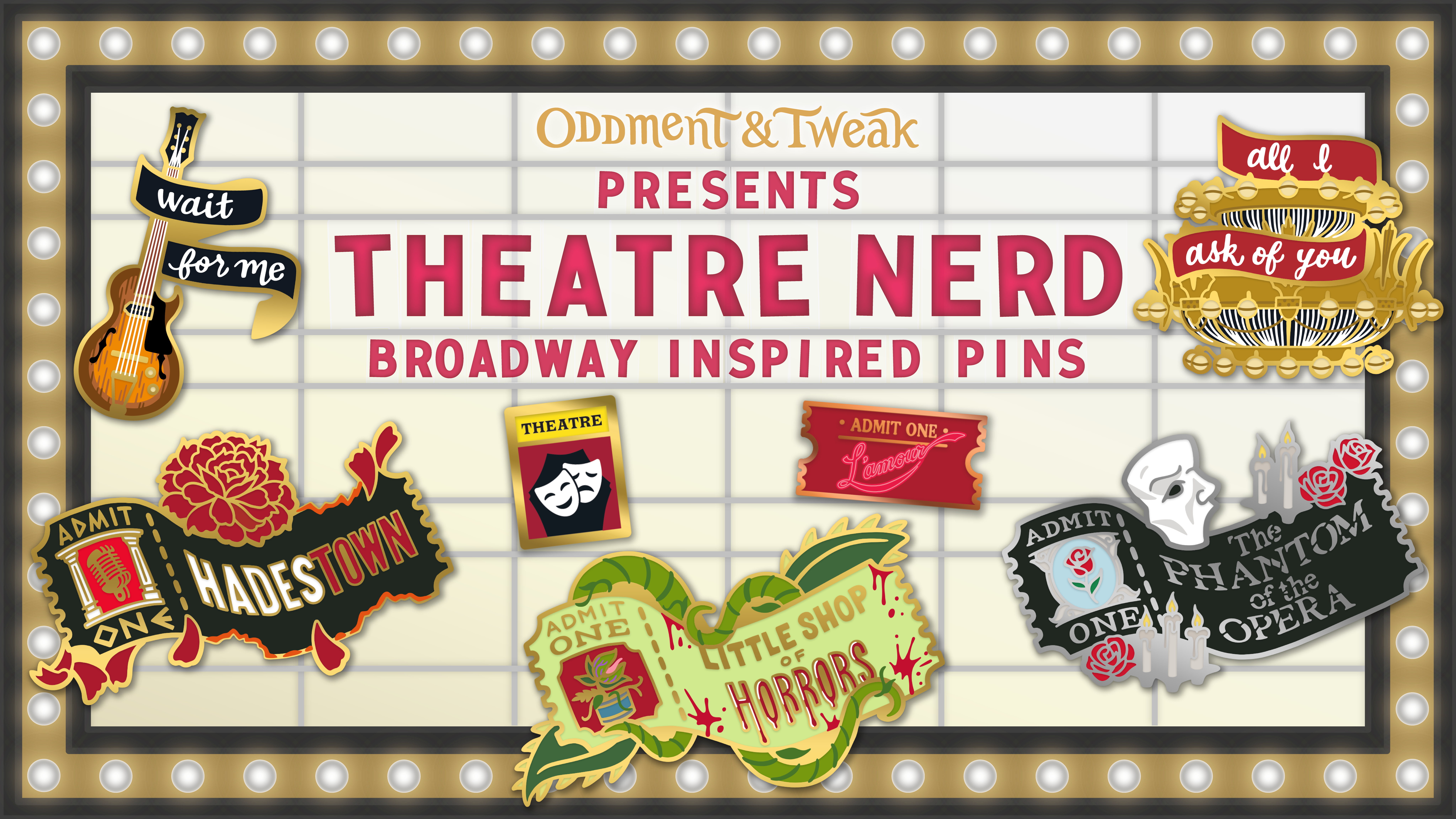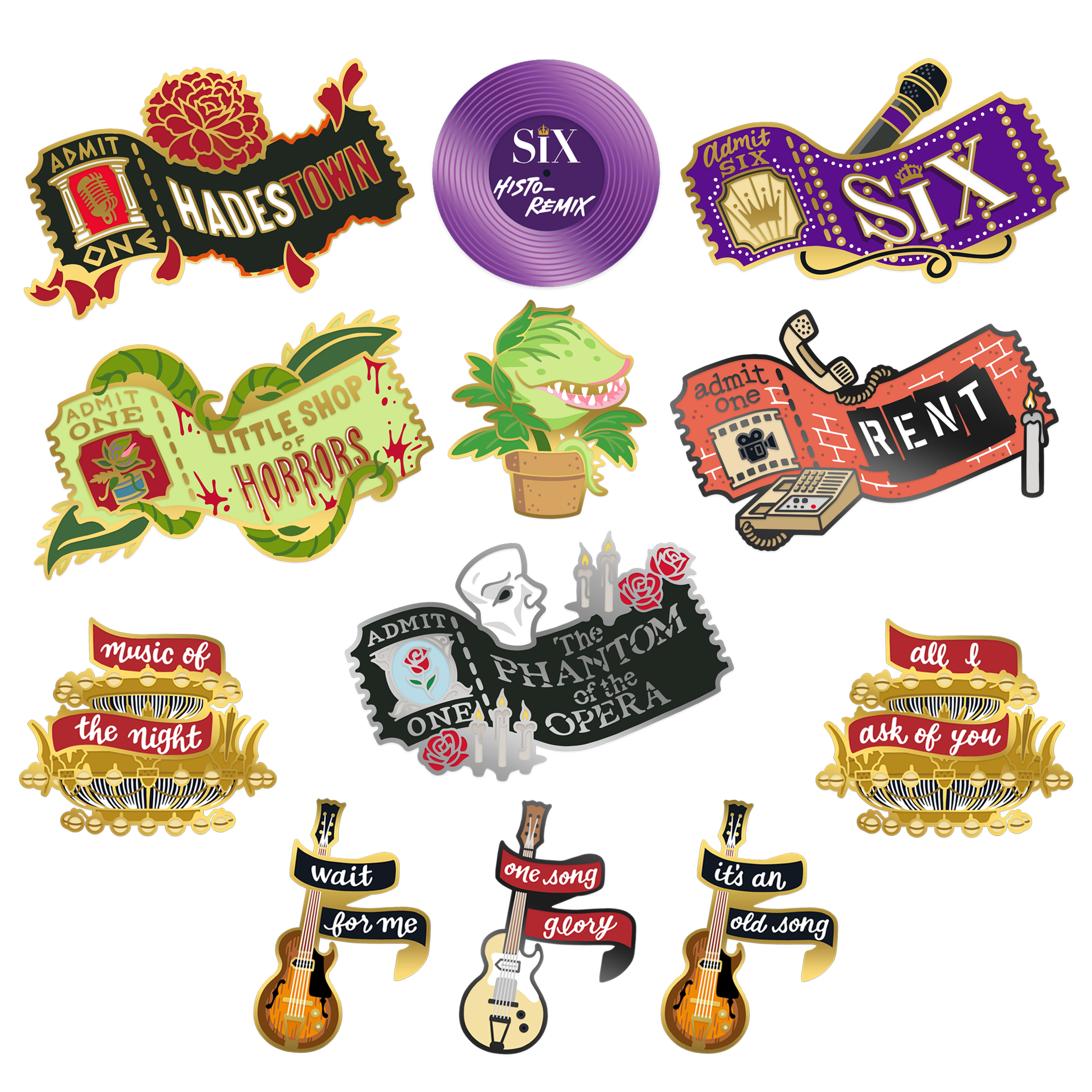 Encore! π Theatre Nerd: Act Two will continue our collection of broadway inspired enamel pins for the theatre lover inside all of us! It launches June 7th.