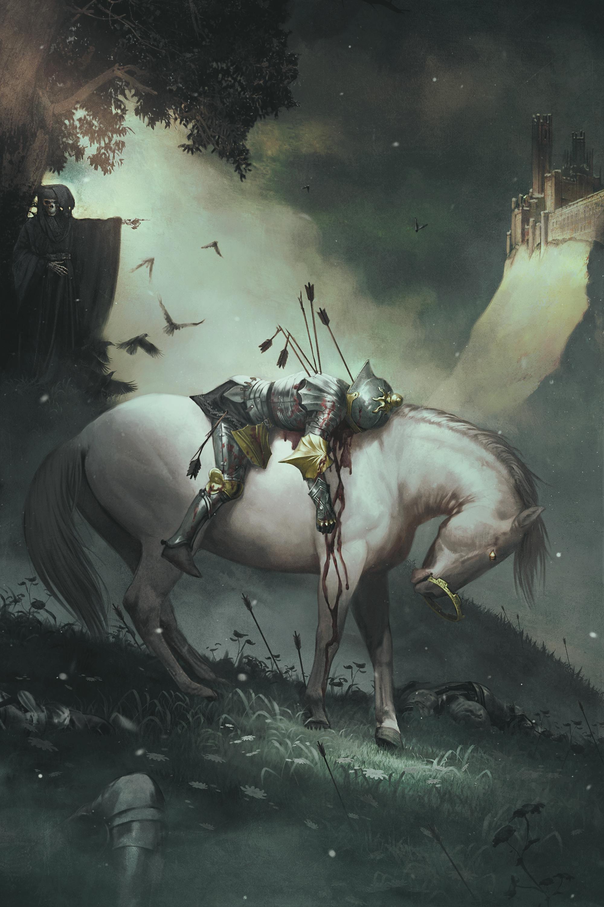 A mighty knight, brought low by most perfidious archers