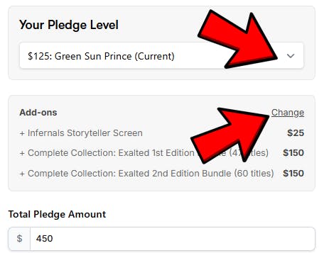 You can select a new Pledge Level from the available option menu, or Change your Add On selection.