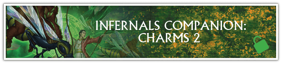 INFERNALS COMPANION SUPPLEMENT: CHARMS 2 - Further Charms for the Infernal Exalted will be added to the Infernals Companion supplement. Backers receiving the Infernals PDF will receive the Infernals Companion PDF as a bonus reward. Backers receiving the Infernals Deluxe hardcover will also receive links to purchase a discounted Print-on-Demand version of the Infernals Companion book.