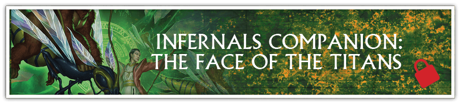 INFERNALS COMPANION SUPPLEMENT: THE FACE OF THE TITANS - An in-depth look at the nature of the relationship between the Yozis and their demonic souls, with storytelling advice on how to use it in your games will be added to the Infernals Companion supplement. Backers receiving the Infernals PDF will receive the Infernals Companion PDF as a bonus reward. Backers receiving the Infernals Deluxe hardcover will also receive links to purchase a discounted Print-on-Demand version of the Infernals Companion book.