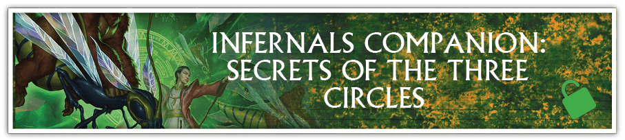 INFERNALS COMPANION SUPPLEMENT: SECRETS OF THE THREE CIRCLES - Additional spells, including more Adamant Circle SorcerY will be added to the Infernals Companion supplement. Backers receiving the Infernals PDF will receive the Infernals Companion PDF as a bonus reward. Backers receiving the Infernals Deluxe hardcover will also receive links to purchase a discounted Print-on-Demand version of the Infernals Companion book.