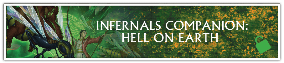 INFERNALS COMPANION SUPPLEMENT: HELL ON EARTH - New locales and plot hooks for Infernals in Creation will be added to the Infernals Companion supplement. Backers receiving the Infernals PDF will receive the Infernals Companion PDF as a bonus reward. Backers receiving the Infernals Deluxe hardcover will also receive links to purchase a discounted Print-on-Demand version of the Infernals Companion book.