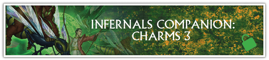 INFERNALS COMPANION SUPPLEMENT: CHARMS 3 - Further Charms for the Infernal Exalted will be added to the Infernals Companion supplement. Backers receiving the Infernals PDF will receive the Infernals Companion PDF as a bonus reward. Backers receiving the Infernals Deluxe hardcover will also receive links to purchase a discounted Print-on-Demand version of the Infernals Companion book.
