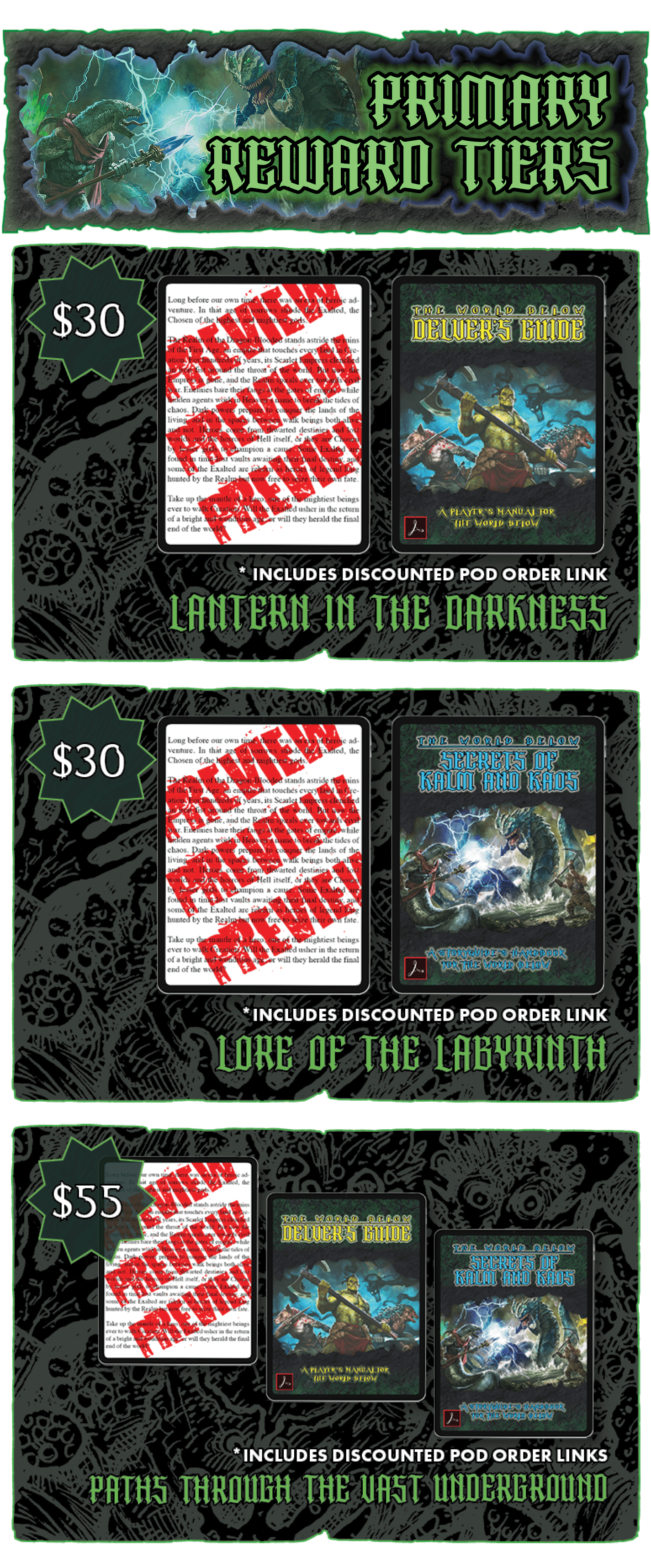 PATHS THROUGH THE VAST UNDERGROUND: This amazing reward tier includes both The Delver's Guide PDF and the Secrets of Kalm and Kaos PDF, along special discount codes to order each of these rewards as Print-on-Demand books.