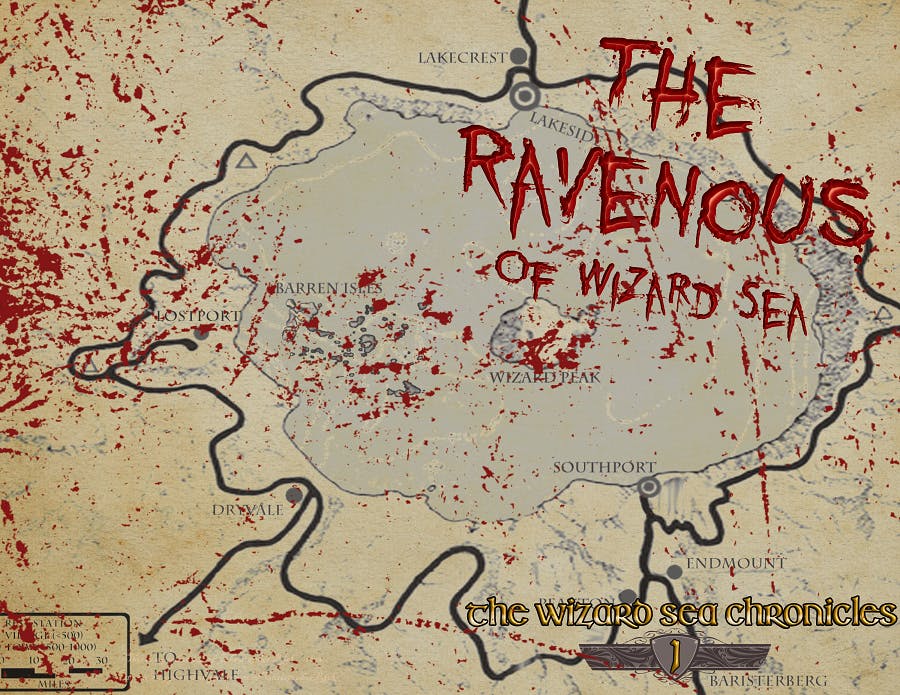 The map is based on an actual place that I then took and edited, modified, twisted and and changed until I was happy with it. The Wizard Sea is roughly 150 miles E-W and around 100 miles N-S. Barristerburg (off map bottom right) is where much of my Intro to D&D for Kids sessions took place.