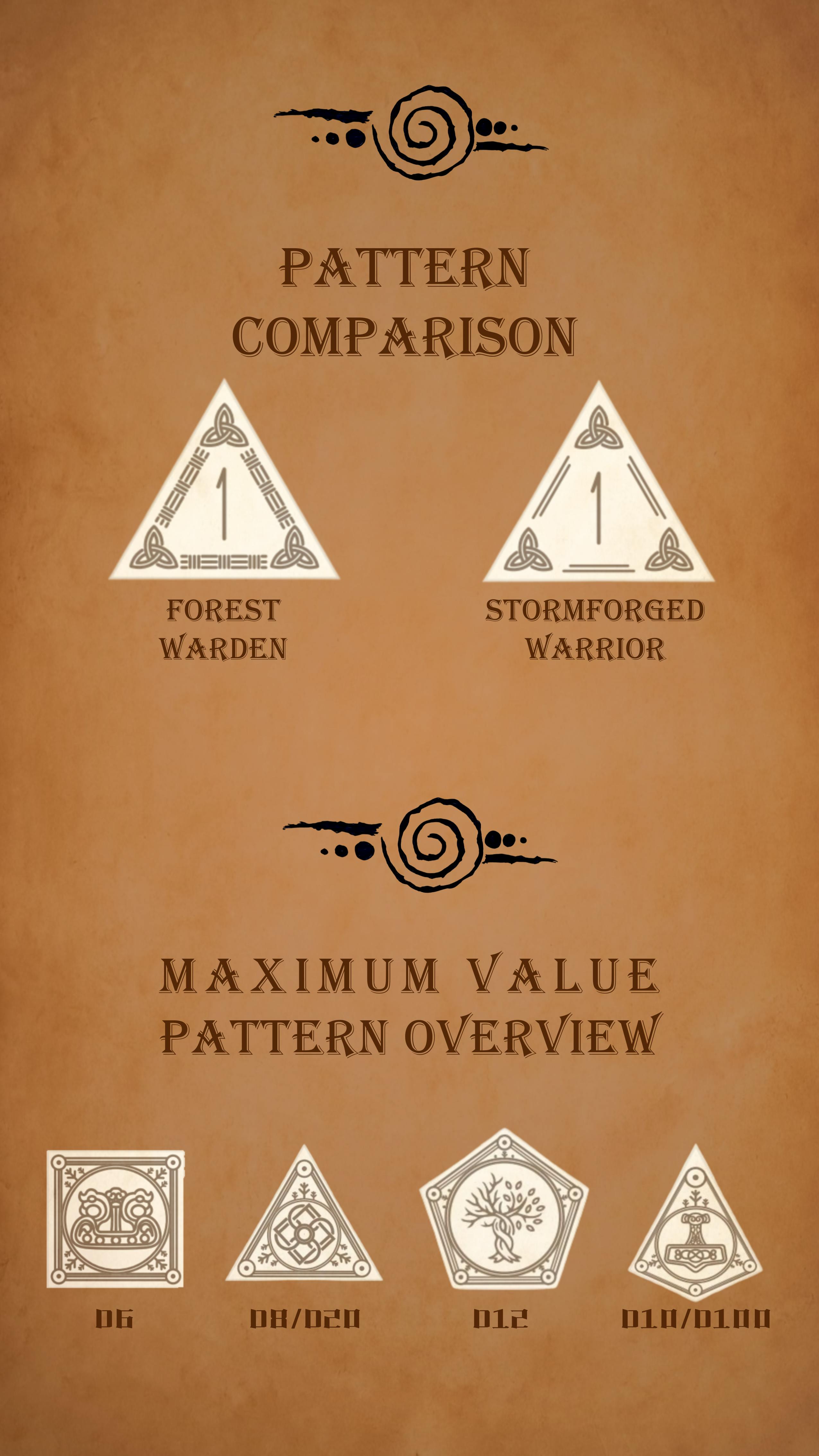 Regardless of the design, the highest value on each die features a unique pattern. This allows you to not only more authentically express your critical hits, but also to do so in a visually stunning way. Without your help, our designs cannot be shared. Thank you for supporting our designs and creativity.