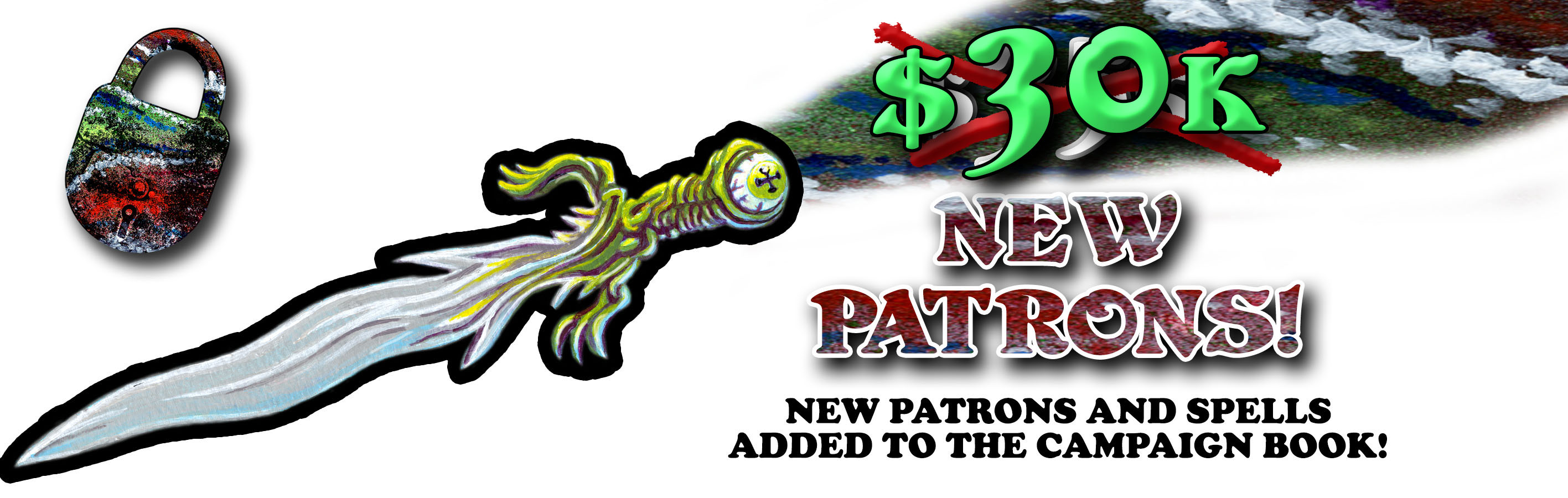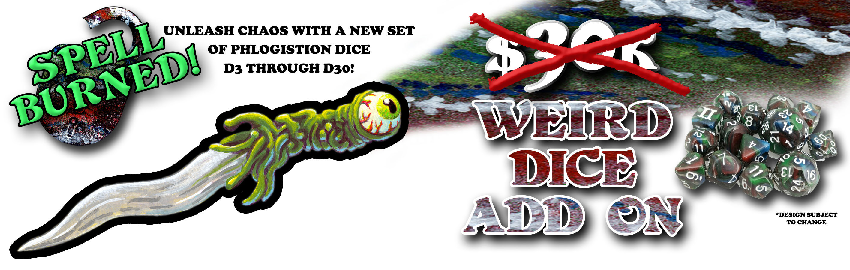 Who doesn’t need another set of weird dice. If this goal is met I’ll produce some crazy chaos dice based off the colors on the cover art. The PCs are bound to meet up with some strange beings. There are already two in the book and at this stretch goal I’ll add a few more! And finally, more illustrations will be added to already packed Handouts book!