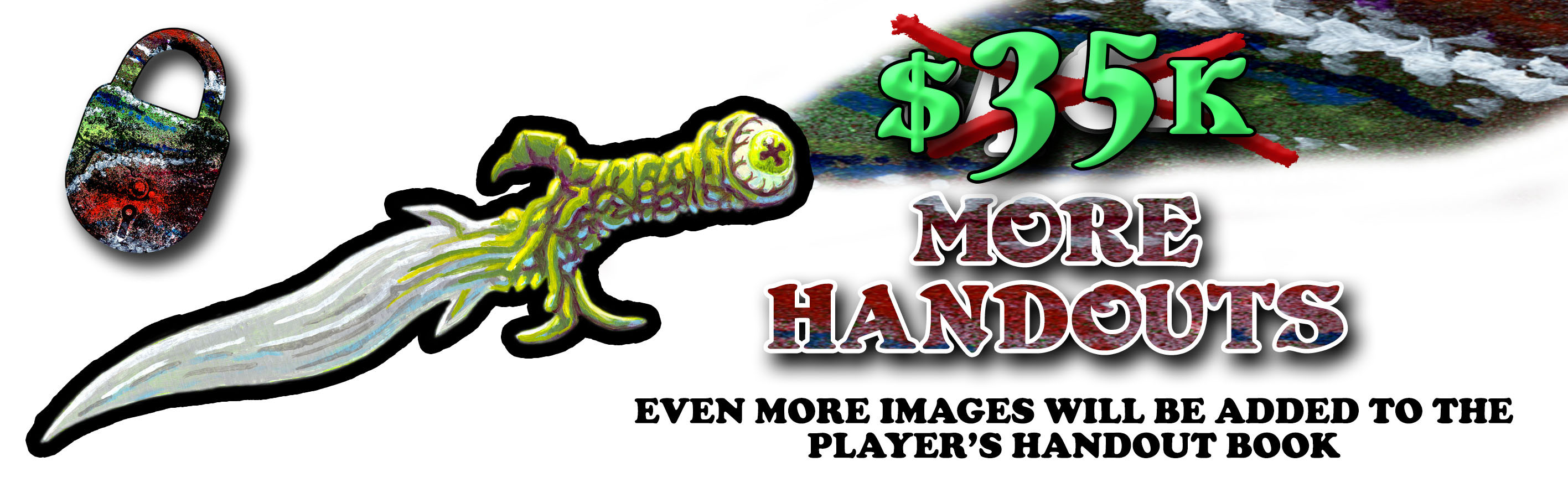 Now that the first two Stretch Goals have been spellburned the remaining two have been lowered. New Patrons is now at $30k and More Handouts is now at $35k.