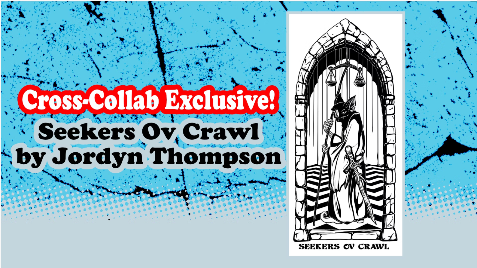 Rev. Dak and I finally have something to show those of you that have thus far backed both projects! The illustration below by Jordyn Thompson, is an homage to Brett Miller's original piece with elements tying into Seekers ov the Other Worlds. This will be a sticker (approx 5in in height) that backers will receive with their Crawl #1 order seeing as it will be printed well before Seekers is!