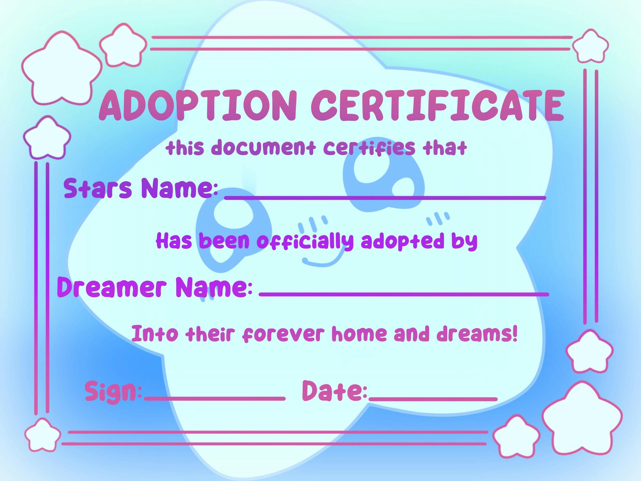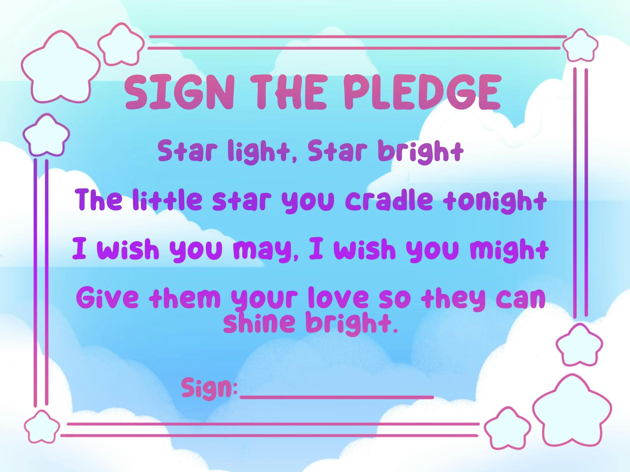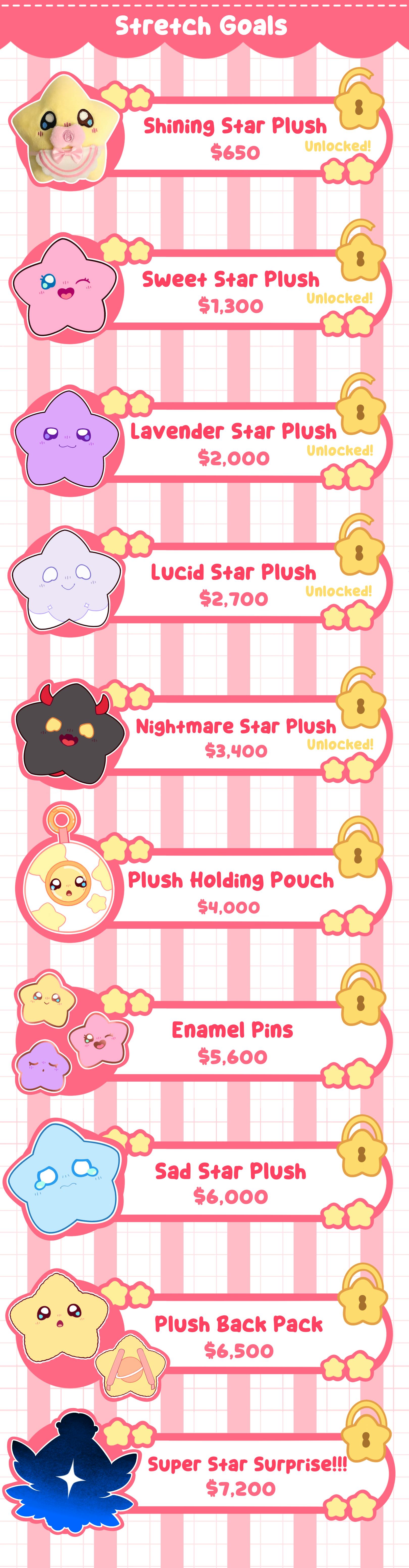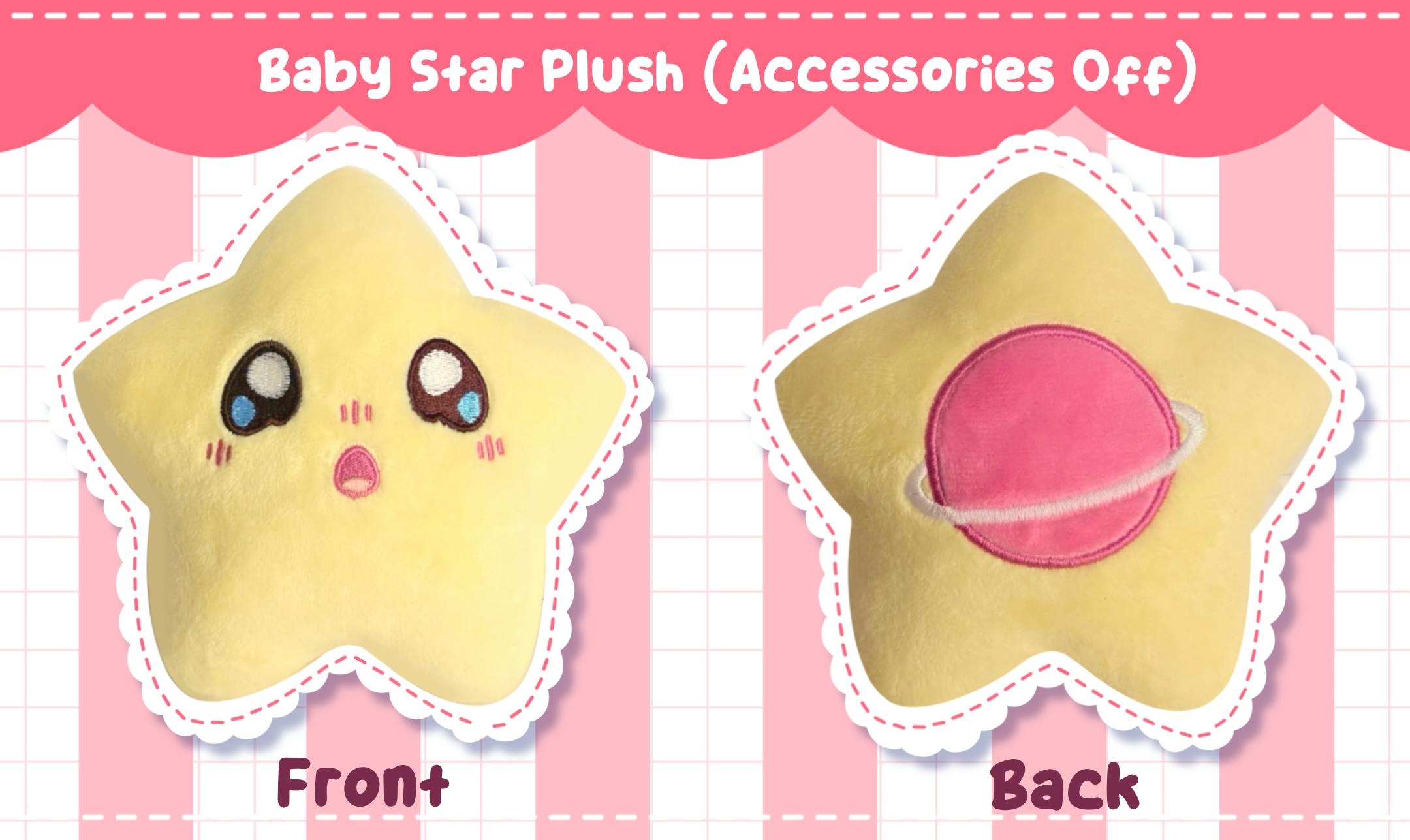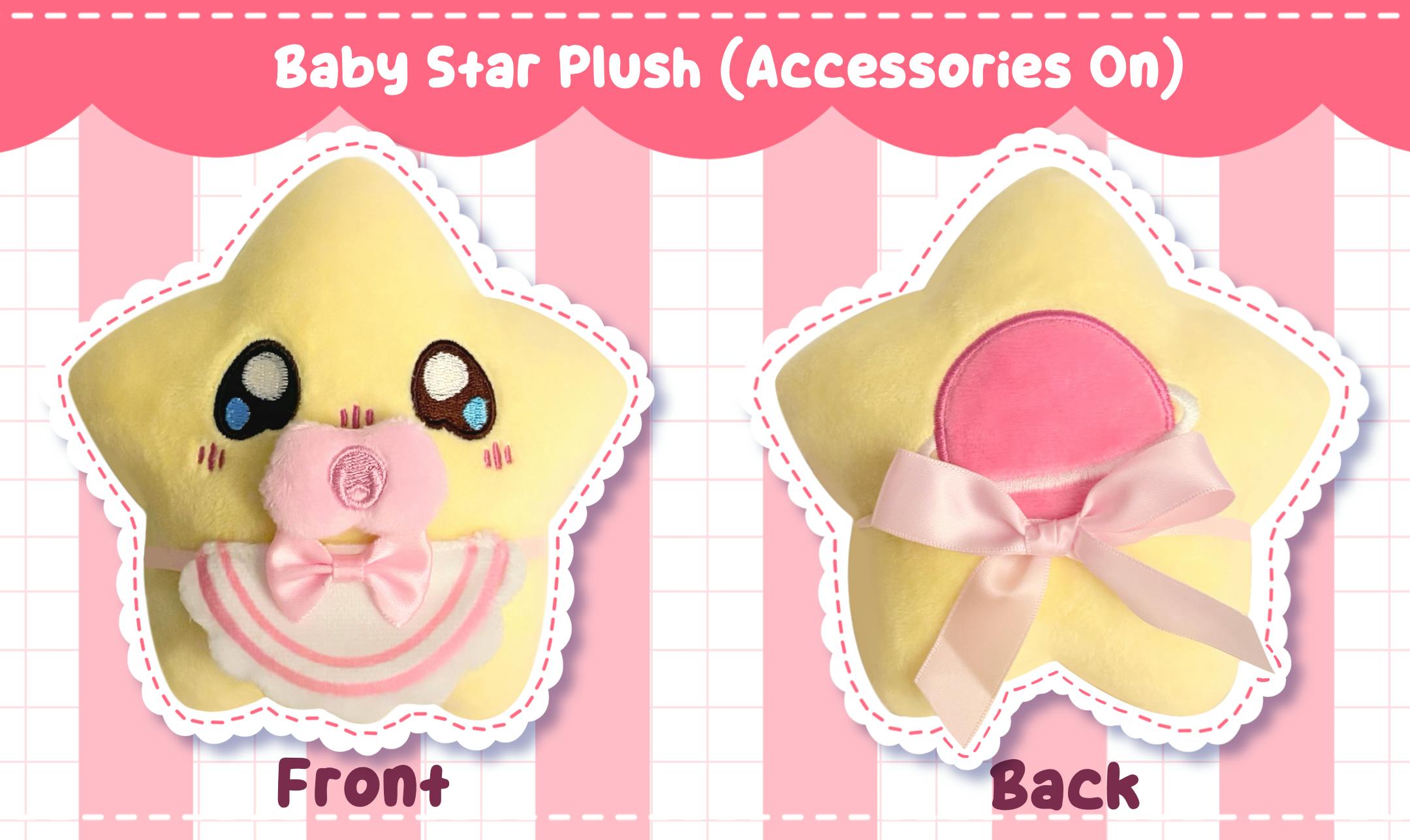 Along with this, each plush will come with two extra items. A collector's card and a Birth Certificate. The collector's card will have a cute design as well as info on the back for each star. The Birth Certificate allows you to name your Baby Star and sign The Star Pledge!