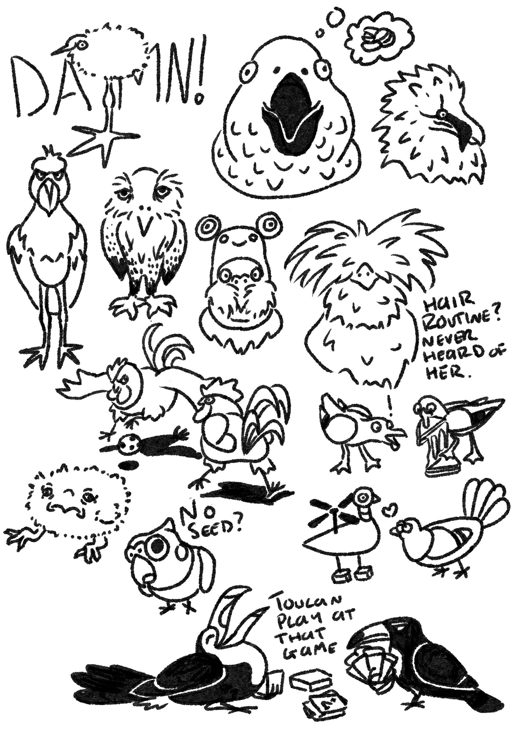 As this project had more than 100 followers before launch, I am creating sticker sheets with 100 bird doodles that will be available as add ons available during the backer surveys!