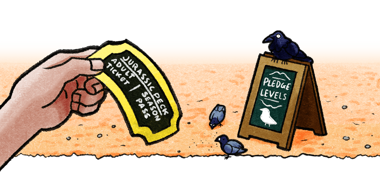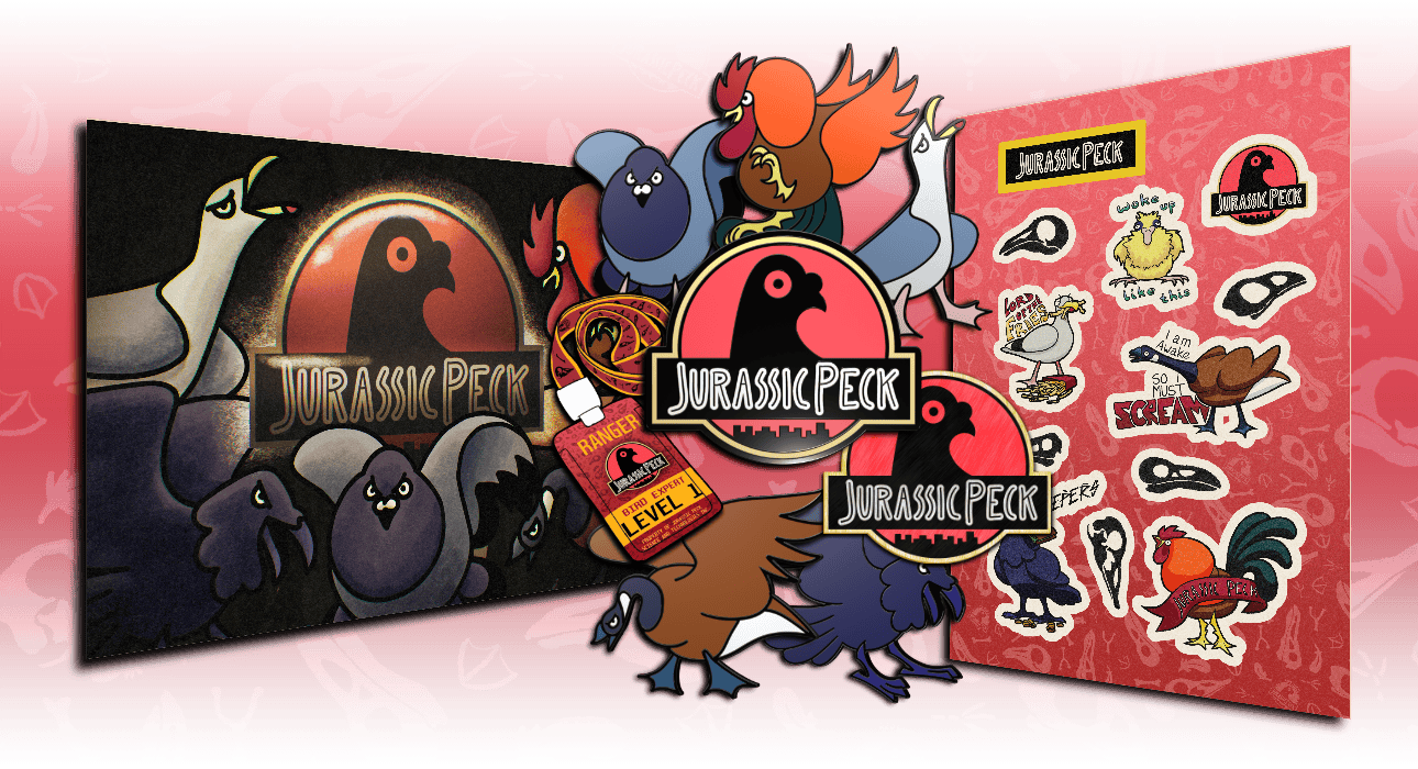 If you back the Jurassic Bundle and Park Ranger levels, an exclusive Jurassic Peck logo pin is included in your pledge (also available as an add-on for other pledge levels).