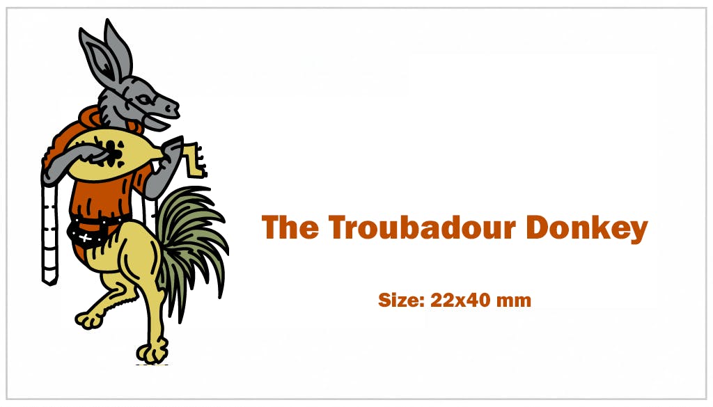 The Traveling Minstrels: A donkey plucks the strings of a lute, while a hare blasts a fanfare on his trumpet.