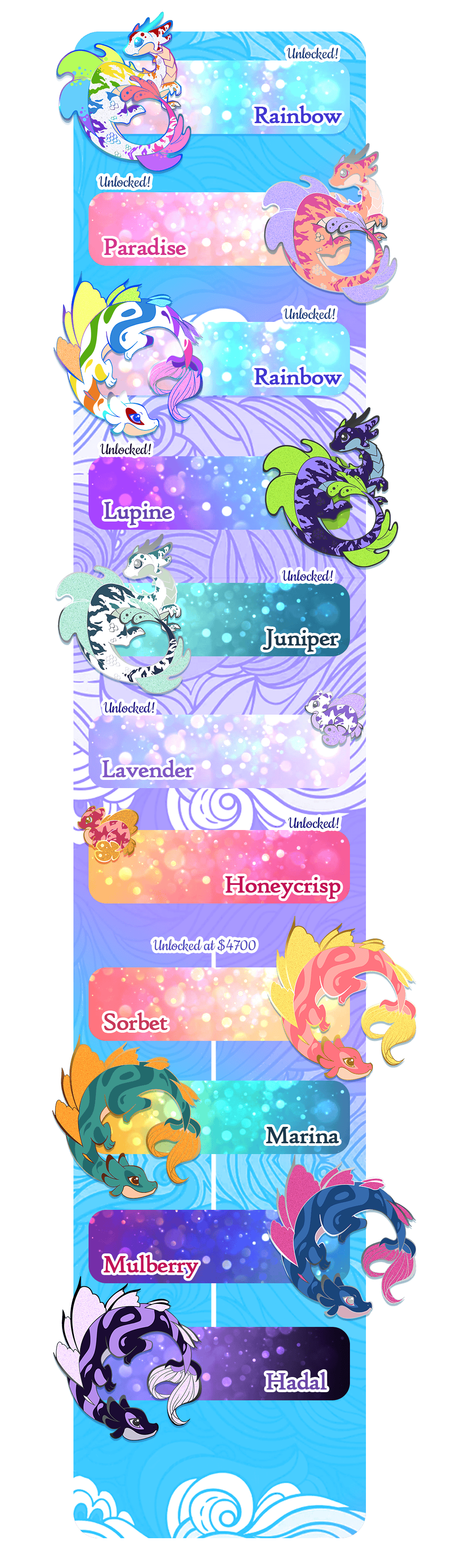 First unlock goes to the Rainbow Sea Dragon. The one that I had advertised back when fulfillment of The Dragon Hoard was going on.