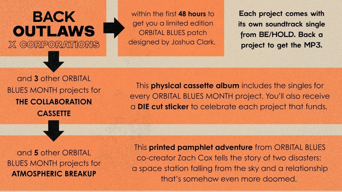 “‘Get Sad, Fast!’... A unique experience delivered with the same flair and finish seen in the mainline Orbital Blues books. I can't wait to own F-Infiniti.” - Zach “JellyMuppet” Cox, Orbital Blues