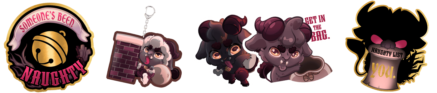 For your support, you can earn Krampus themed stickers, pins, a wooden keychain, Yule newsprint wrapping paper, Krampus art prints, and ofcourse, plushies! There are a lot of rewards to choose from, but it’s completely customizable! You could get just one plush, or add-on whatever you like to get exactly what you want, within your pledge amount. You will also have some rewards that bundle everything togetherfor a cheaper price, ratherthan adding everything on at full price.