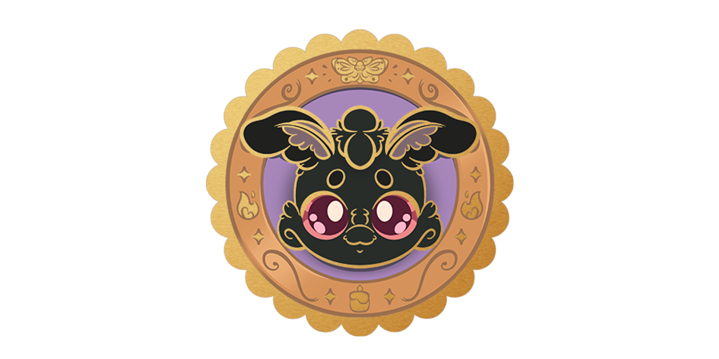 The EBS applies to anyone who backs the Monty Mothman and the Eclipse Pals campaign, at any physical pledge level, within the first 48 hours of launching. The free pin for this incentive is a circular stamp-themed Monty Mothman pin. This pin is a gold metal color, with a flat printed design.