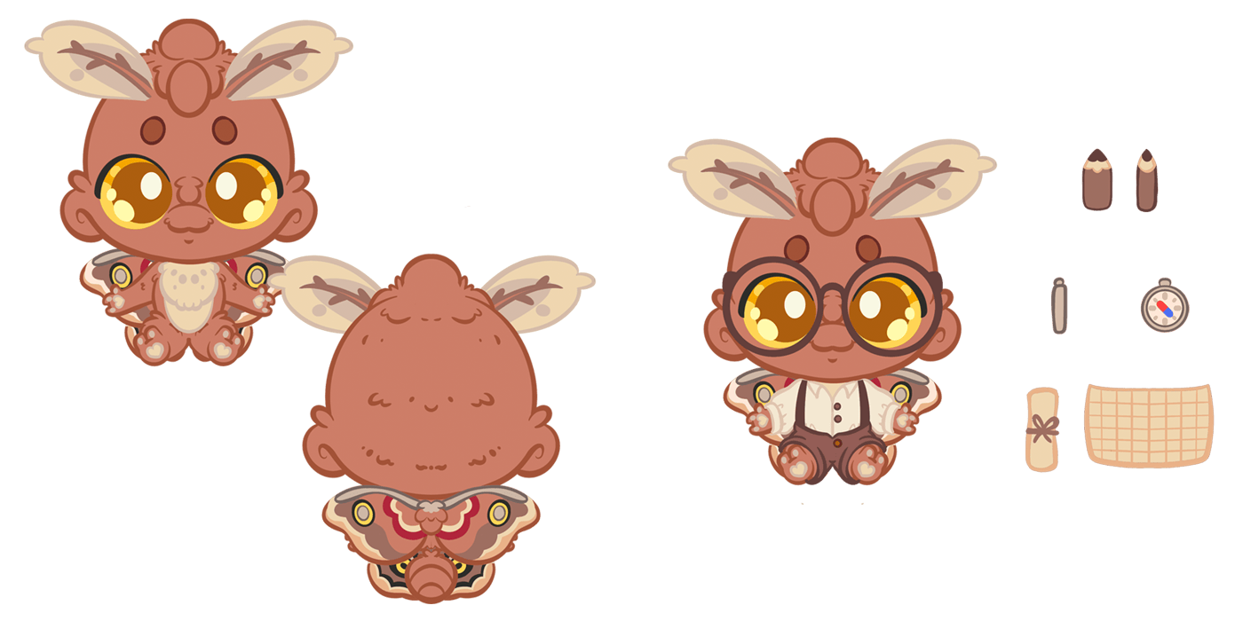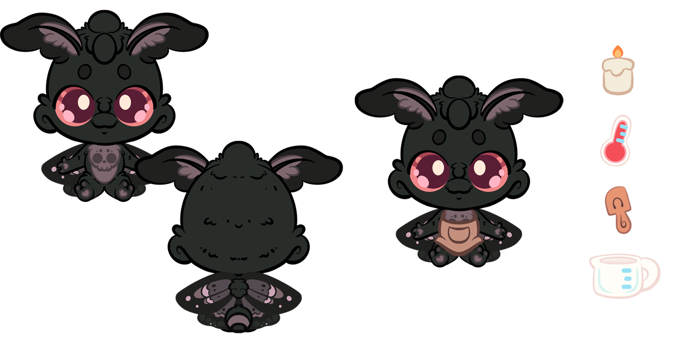 A nocturnal cryptid that enjoys making candles in his spare time. He’s a bit shy with strangers, but really goes all out for his pals! ✨ Props: Candle, thermometer, spatula, and measuring cup ✨ Clothing: Apron