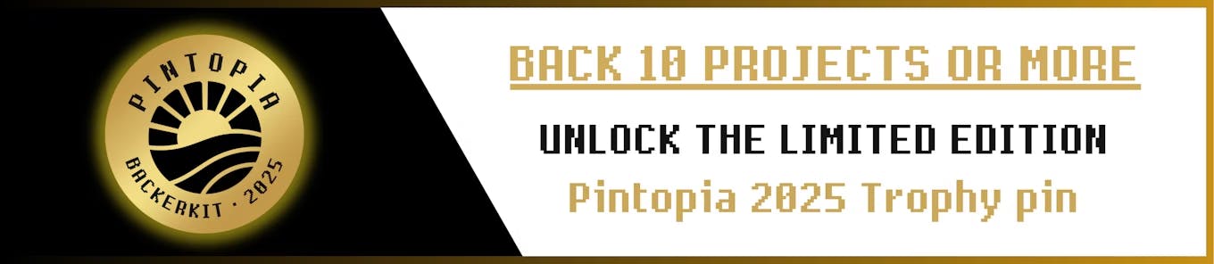 Gold Pintopia 2025 Pin: Back 10 projects to unlock this exclusive reward, surveyed and shipped by BackerKit.