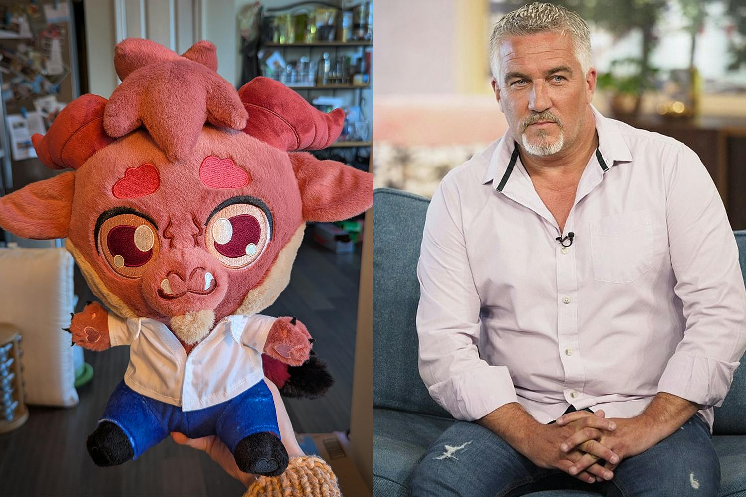 Kidd Krampus in white collar shirt and blue pants, compared to a photo of famous baker, Paul Hollywood