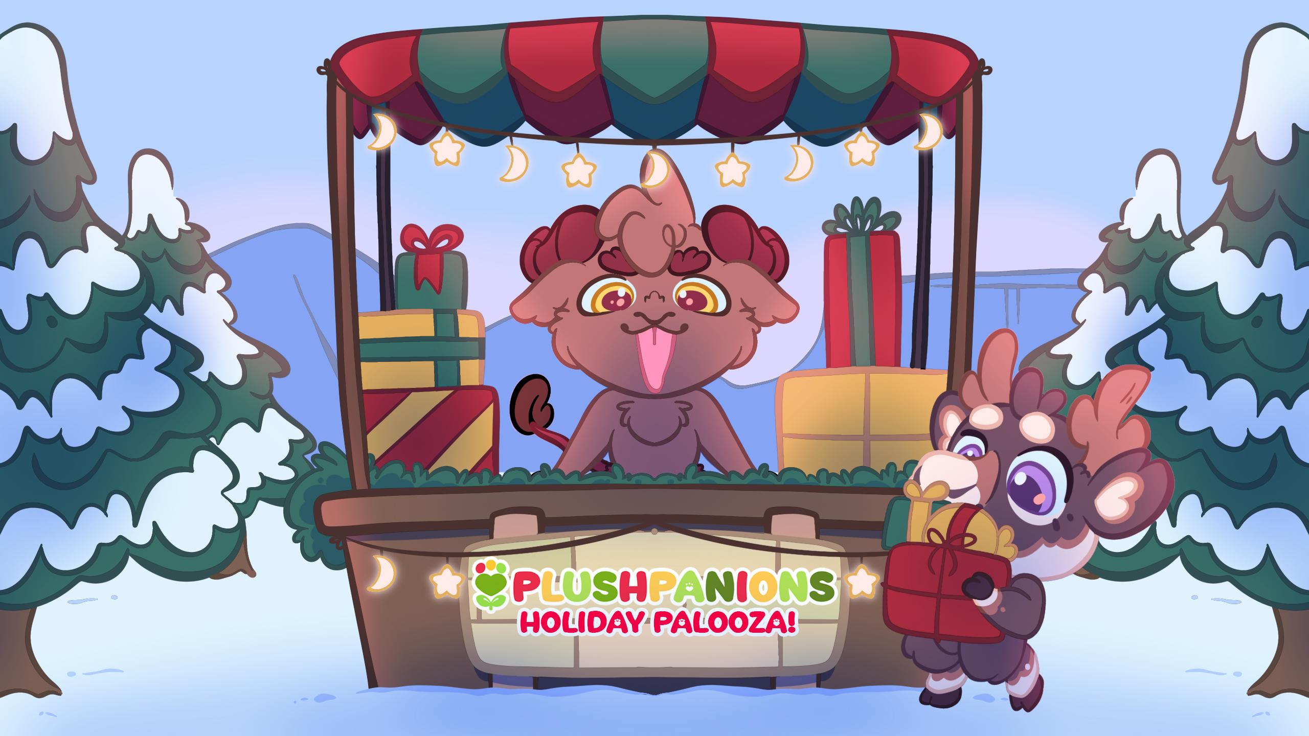 "Plushpanions": "Holiday Palooza" | Krampus hosting a little market stall with his reindeer brother, Reinhold