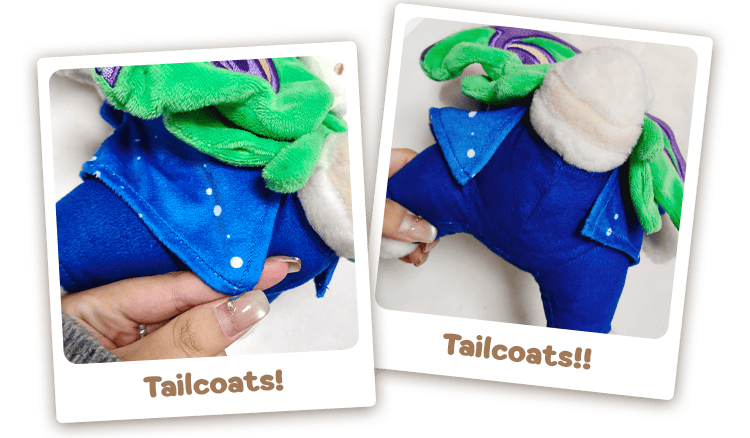 Left: One updated tailcoat shape shown - "Tailcoats!" | Right: Both tailcoat shapes shown - "Tailcoats!!"