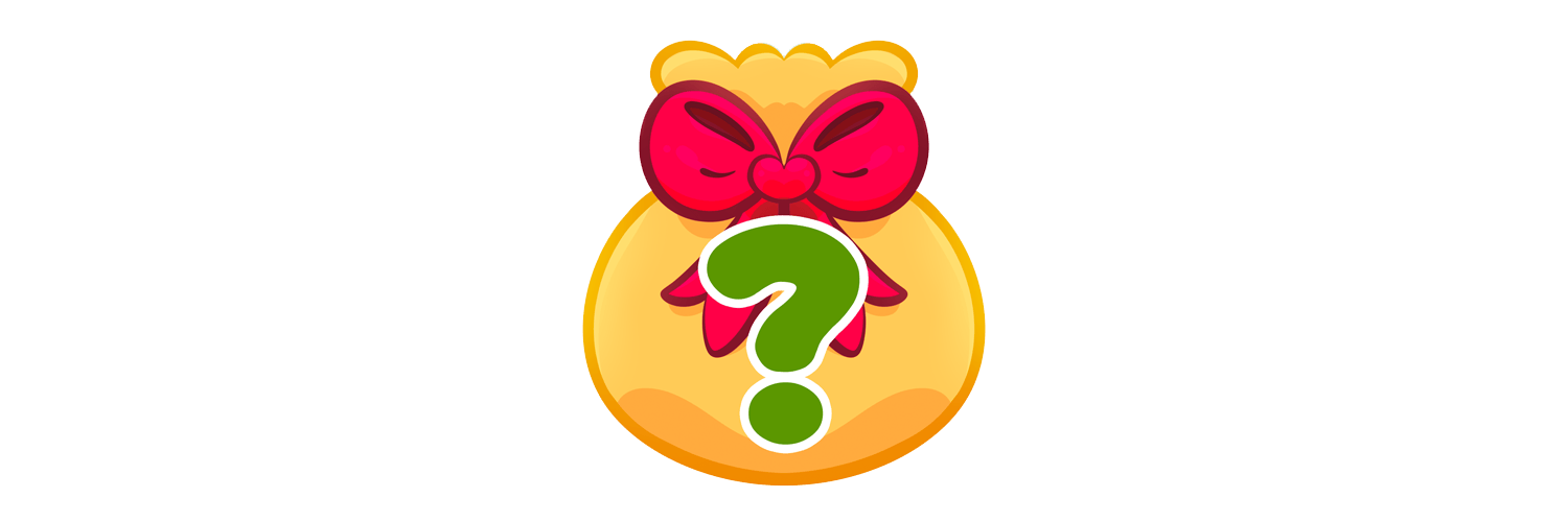 Image of yellow mystery bag with a red bow and a big green question mark on it
