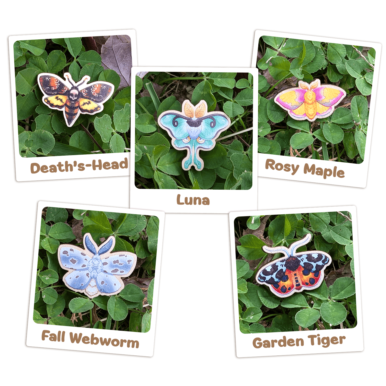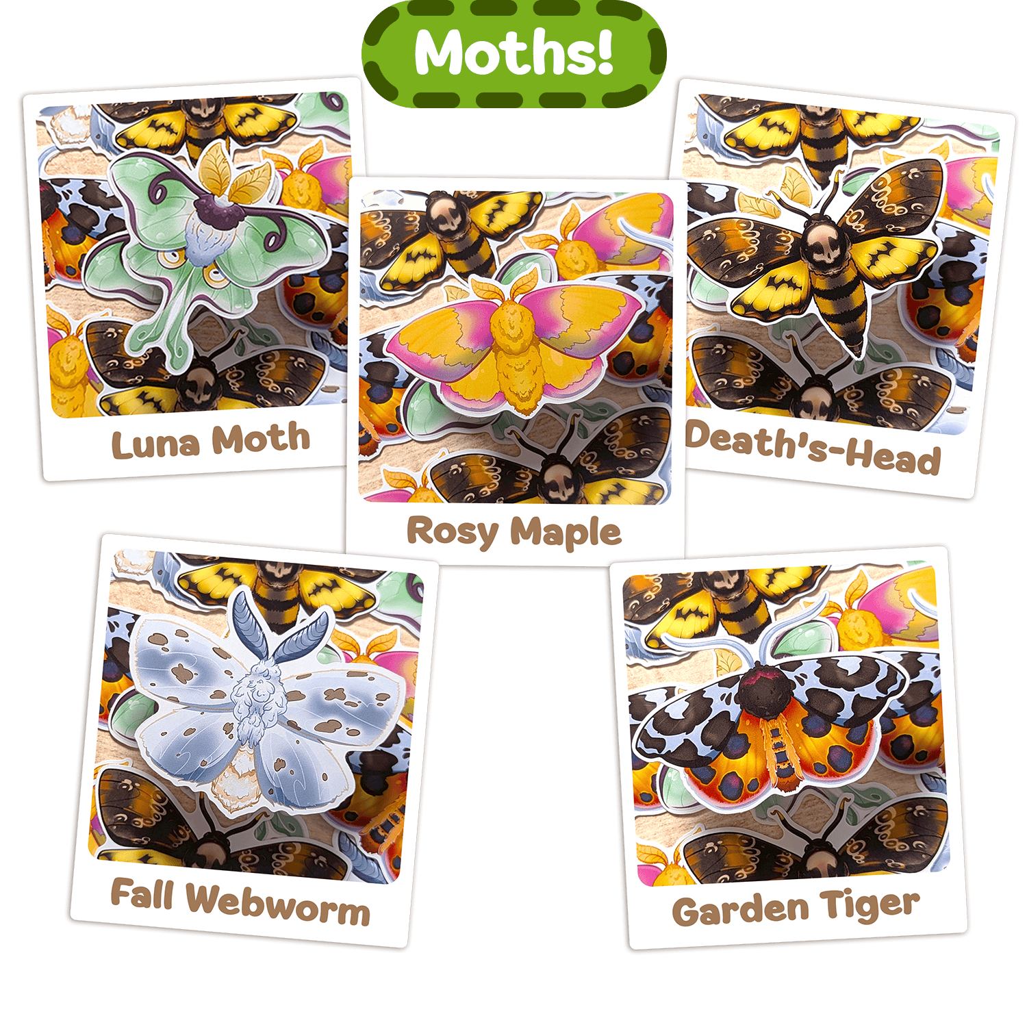 Sticker Showcase: Luna Moth, Rosy Maple, Death's-Head, Fall Webworm, & Garden Tiger