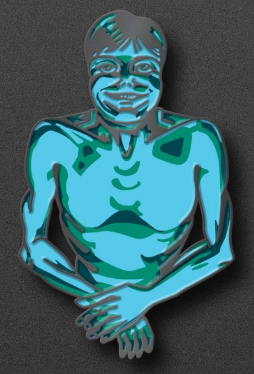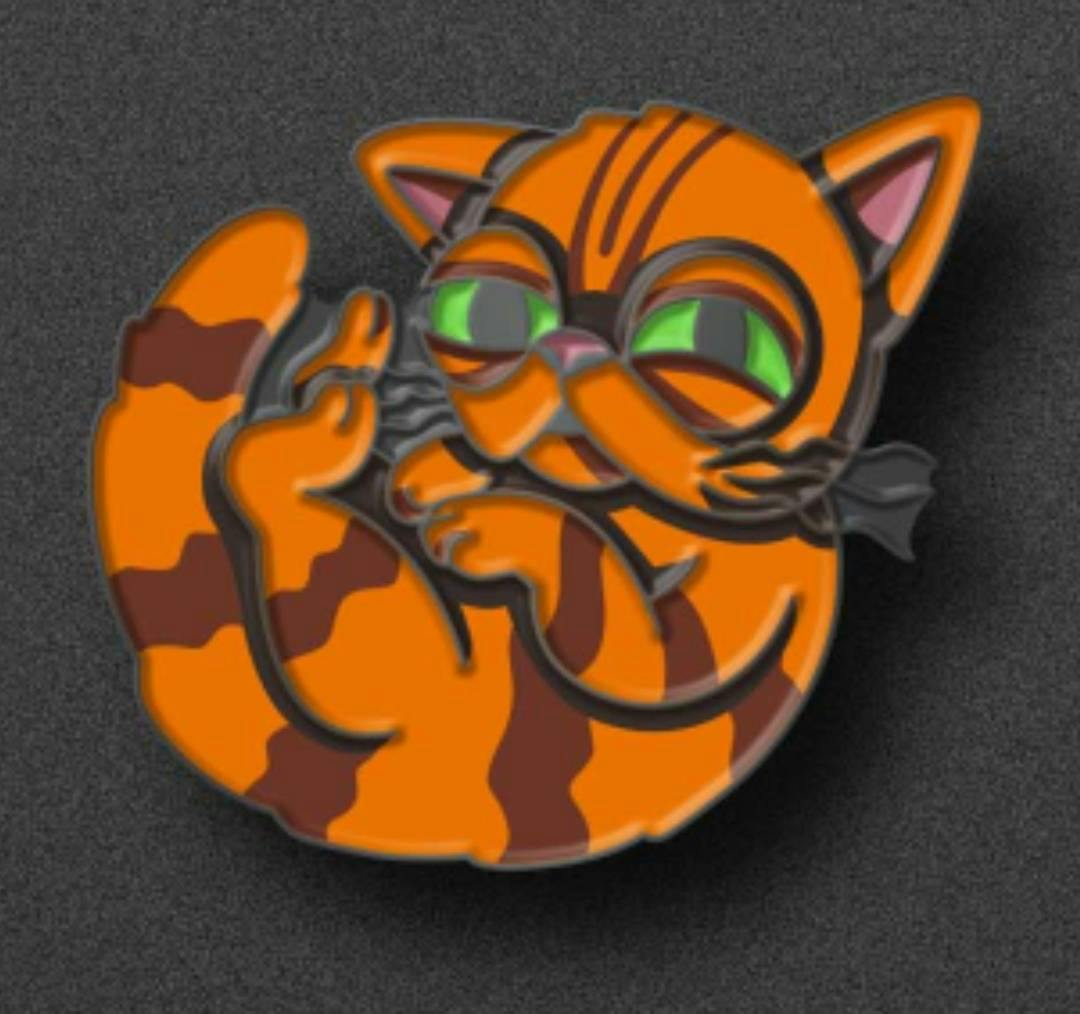 Due to the smaller size of the cat pin, the gaps seen here can not be empty. We can keep this area recessed metal or fill it in with a color. Vote below! The gaps in the Coat Guy's hair are too small to not be filled in, so they will be removed