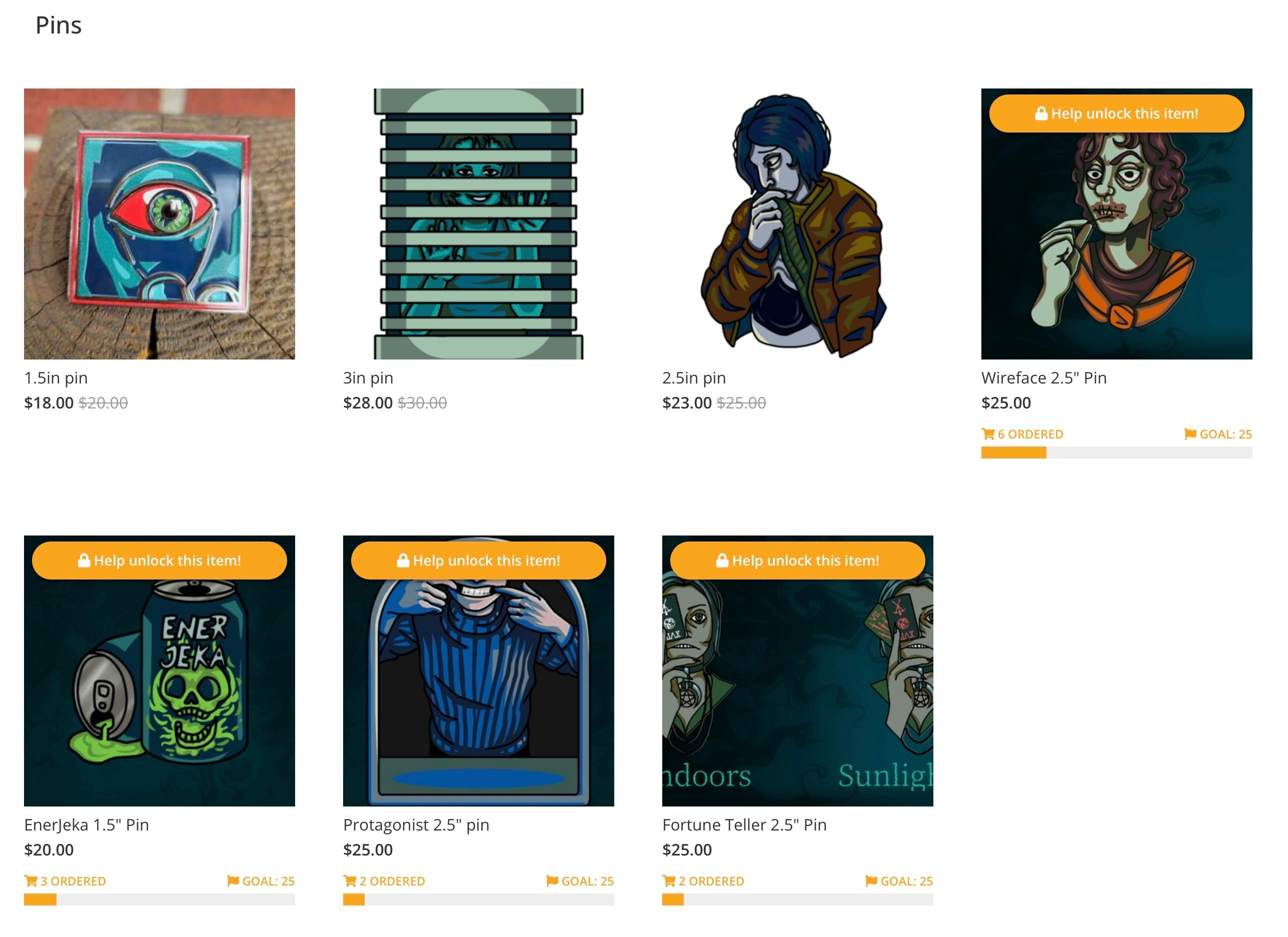 Any pins we do not manage to fund will have another chance in a future NINAH Backerkit campaign, but it would be great to get more available during this one! It would be appreciated to share the preorder shop with your friends and around so we can make them real.