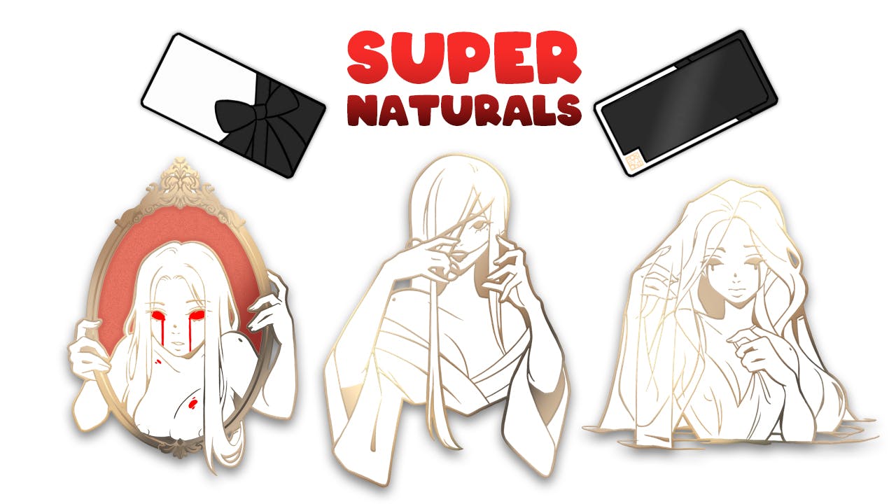 welcome to super naturals ! pocket's third campaign as part of pintopia on backerkit ! this year we are celebrating some ghostly ladies from around the world but that's not all ! we are also working to fund pocket's first ita design, the penumbra ita wallet ! we are so excited to bring you this collection this year, let's make it a big success ! are you excited? which item are you looking forward to the most ? 🖤