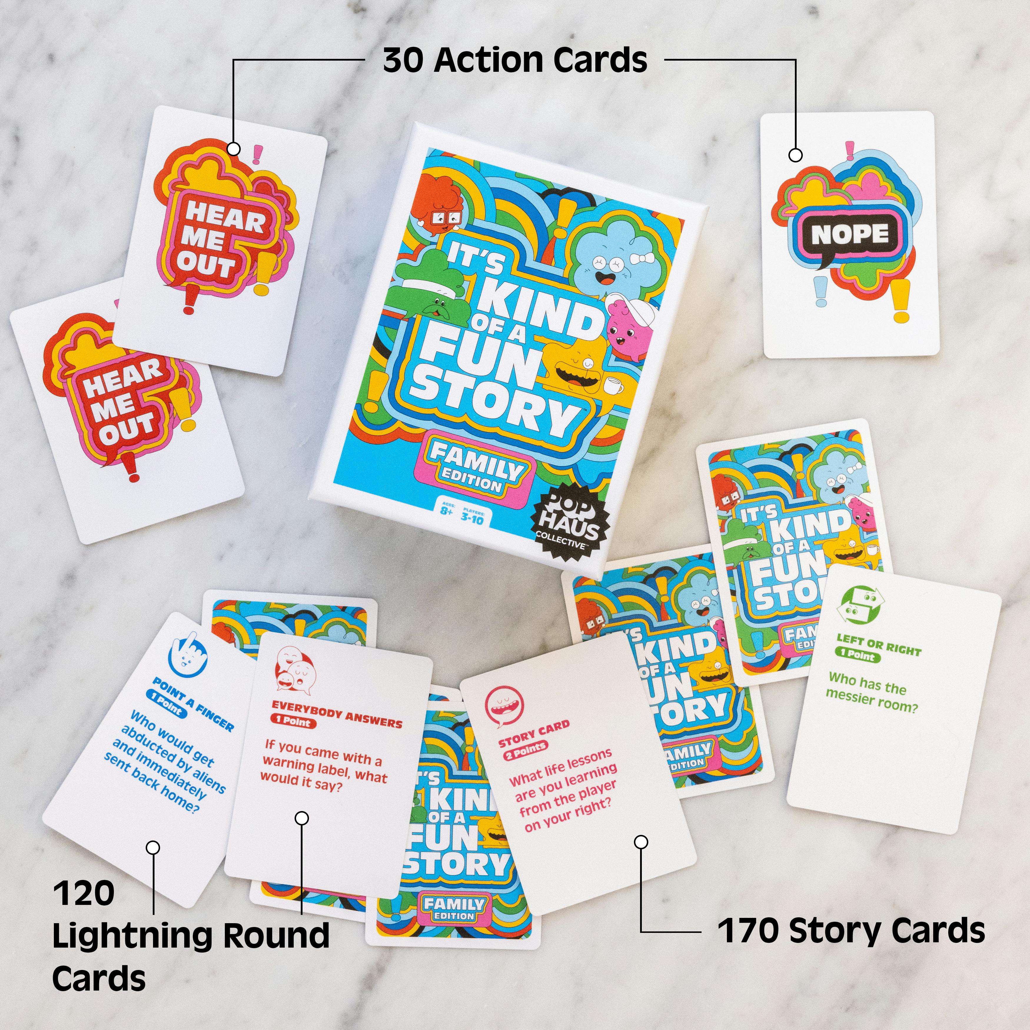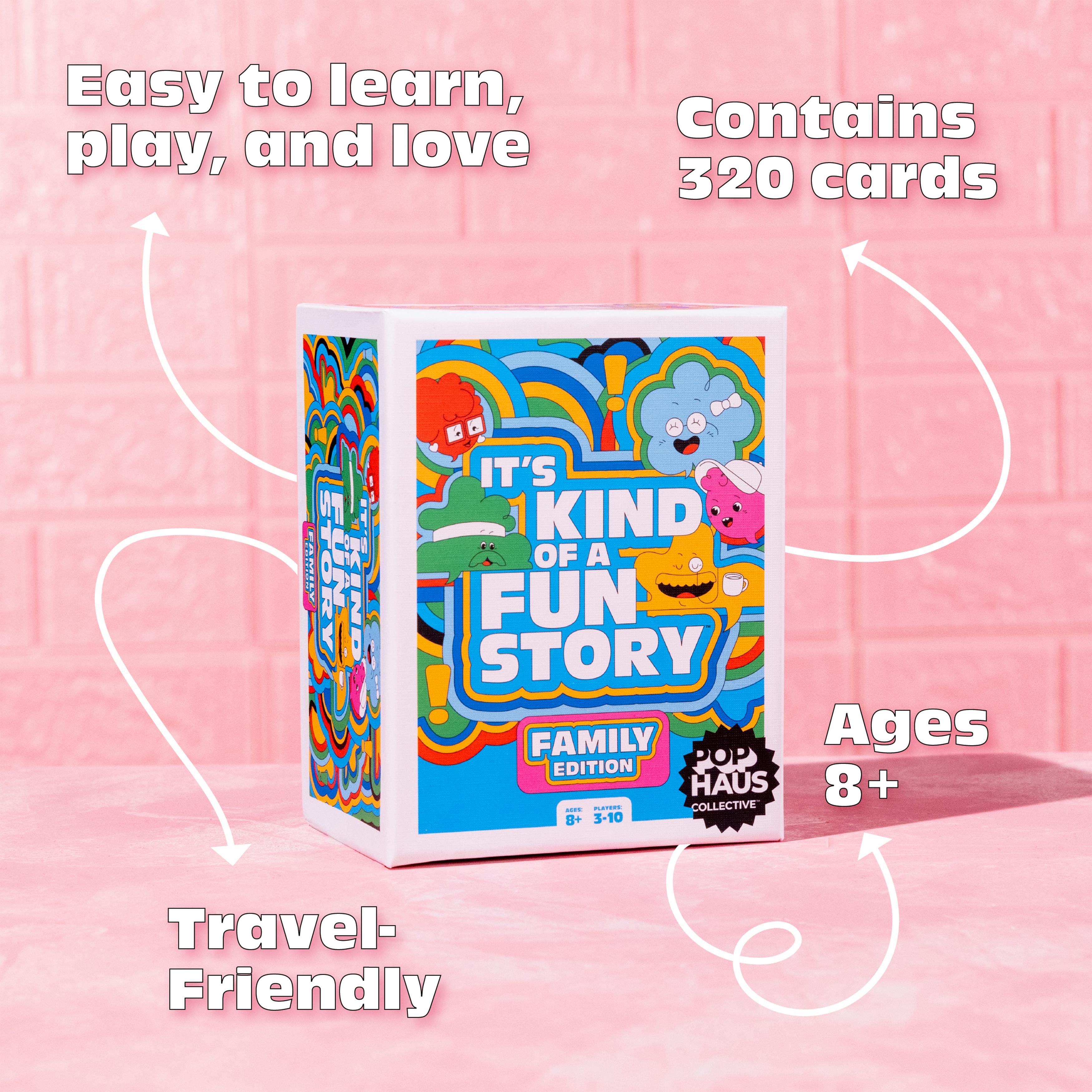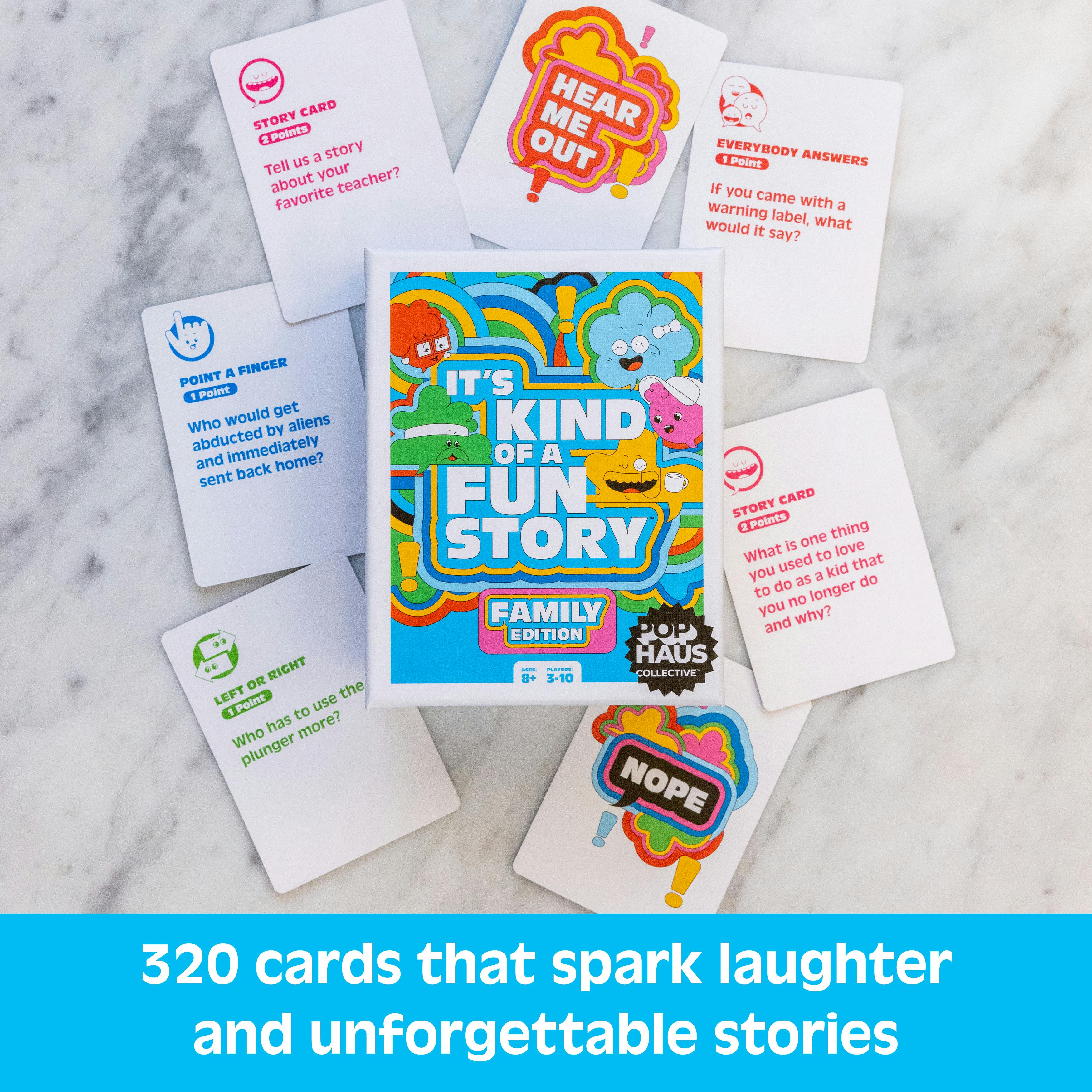 A WHOLE NEW FAMILY GAME NIGHT: Skip the small talk and let the laughter begin with It’s Kind of a Fun Story: Family Edition, the family-friendly storytelling game where your real-life moments earn you points. With 320 conversation cards, every round is fun, fast, and full of surprises as players share stories, compete to steal points, and learn more about each other along the way.