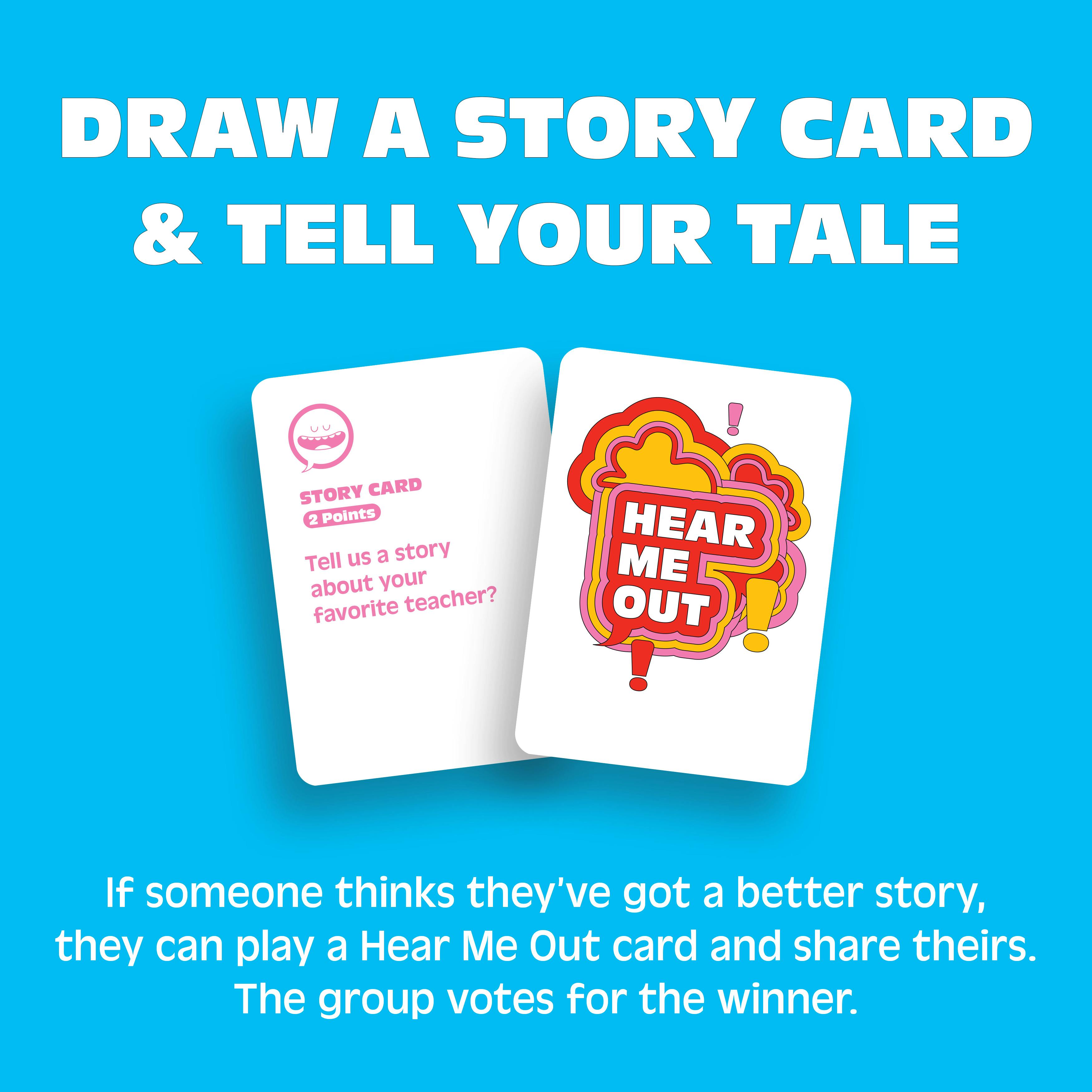 HOW TO PLAY: The game is simple. Players take turns drawing from a deck with—you guessed it, story prompts. Reading each out loud they can choose to share a story or skip. But, be careful, with every skip also comes the risk for another player to jump in and claim points. First player to seven points takes the win.