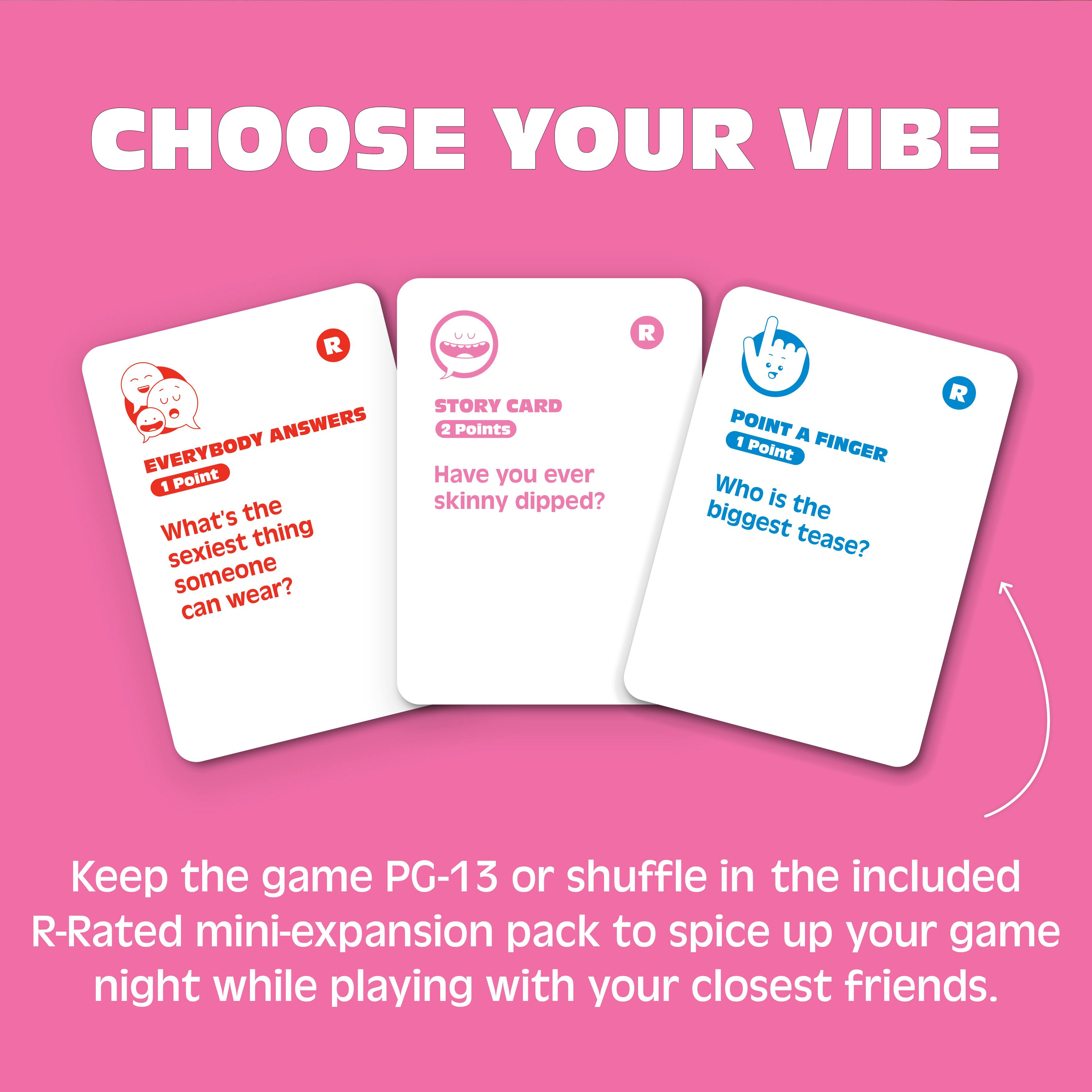 GIFT LAUGHTER THIS SEASON: Perfect for game nights, pre-games, bachelorette parties, family gatherings, or happy hours, it’s easy to learn and endlessly replayable. You can keep it clean or make it spicy with the included R-Rated mini-expansion pack— the choice is yours.