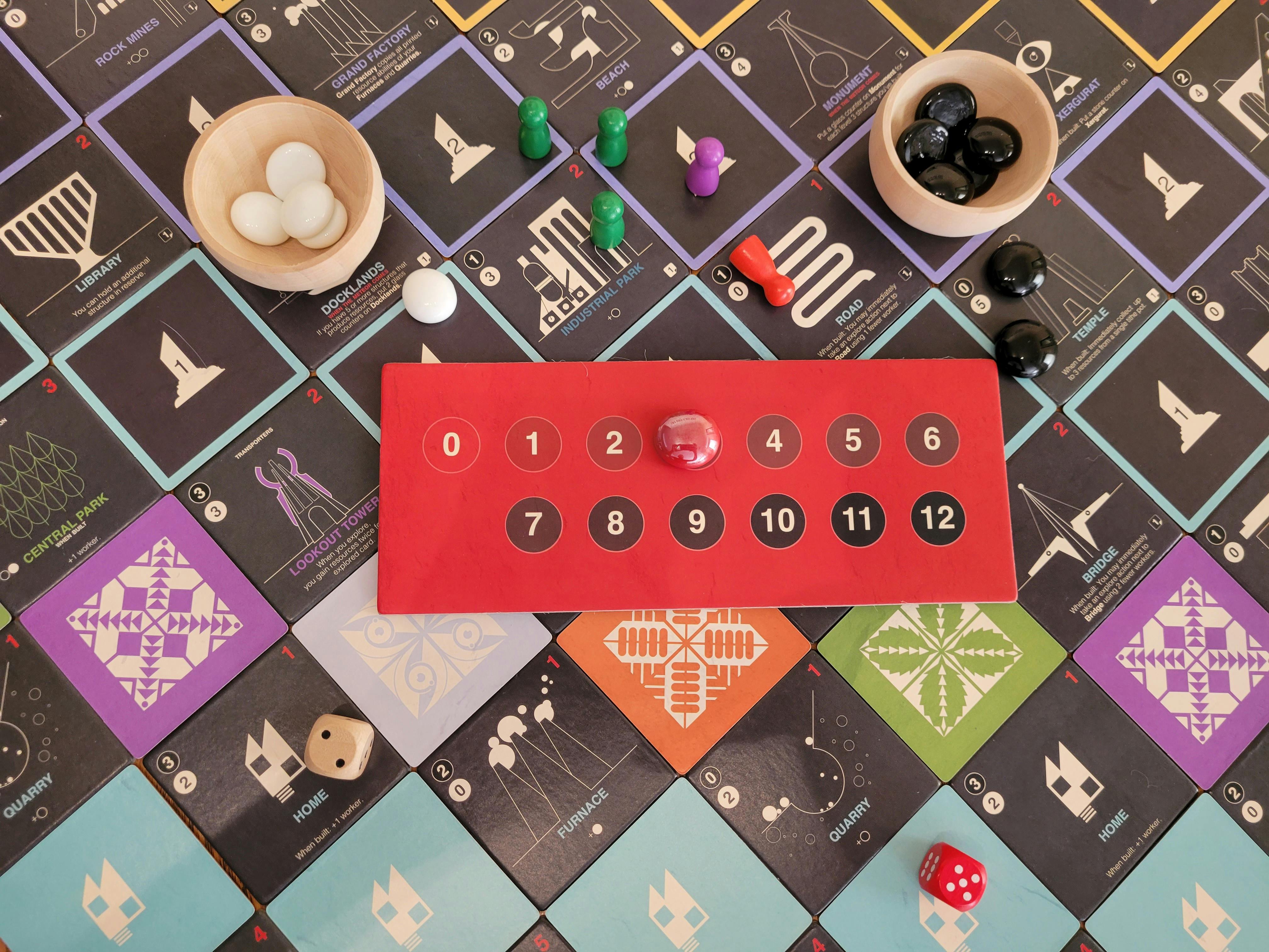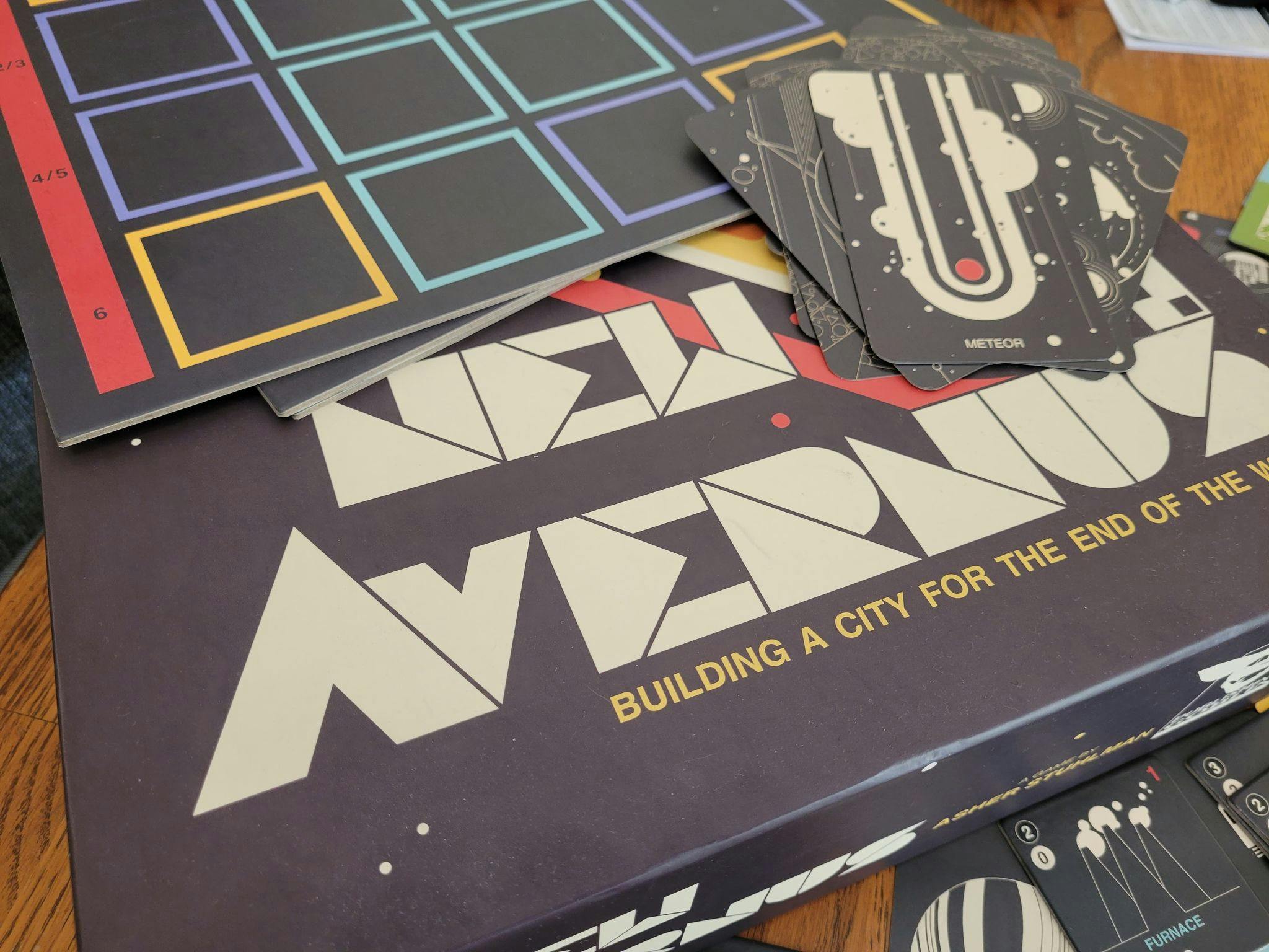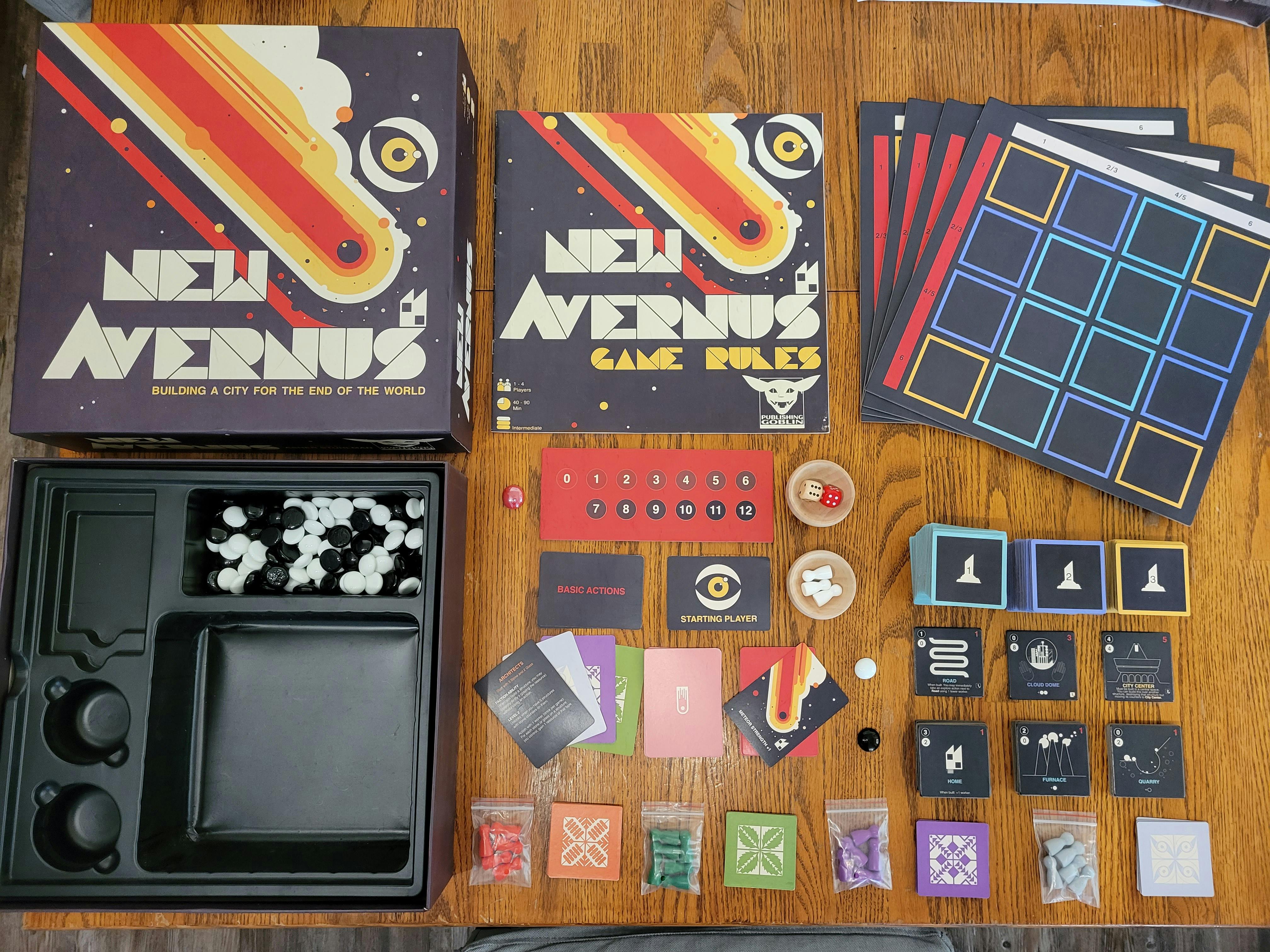 New Avernus is an apocalyptic city-building game. This competitive game pits you and up to three friends in a race to build the greatest city that just might last the oncoming apocalypse as the Meteor strikes and reduces your ambition to rubble. The meteor can strike at any point from turn 7 to 10, so plan accordingly and take big risks as time runs out. Once the smoke clears, and your cities are surrounded by their ruin, the player with the most points still standing wins!