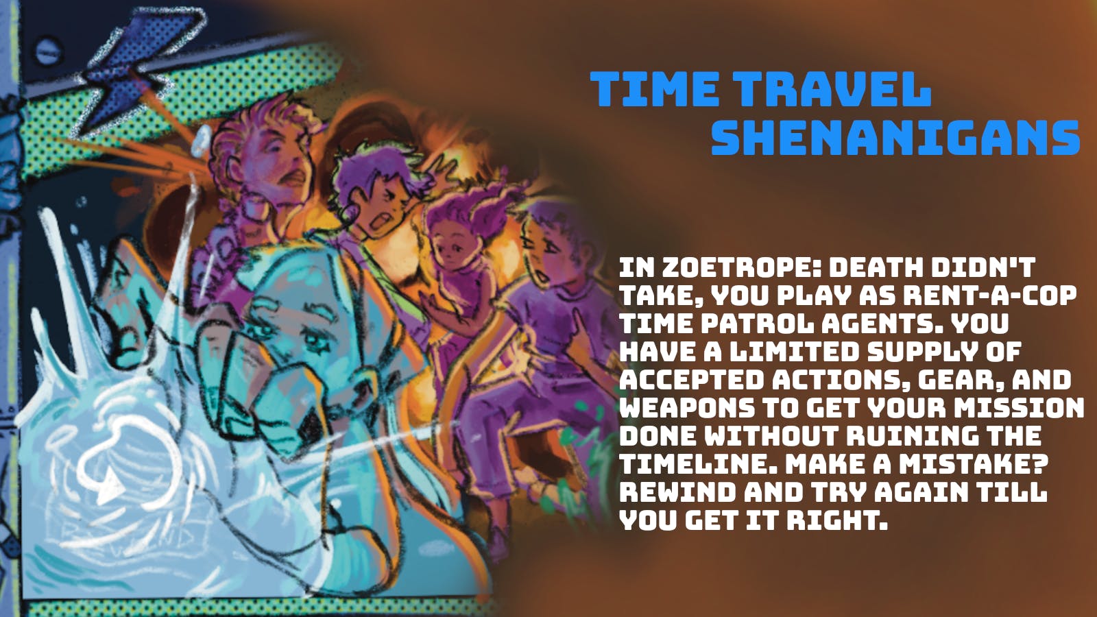 Additionally, the 2nd edition of ZOETROPE, the card-run TTRPG about playing the rent-a-cops of time travel, is available on the project! So if ghosts are sounding a bit too spooky for you this Halloween season, lock and load to patrol time instead. Or grab both for just $40!