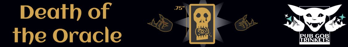 50 or so of the collaborative mini pin set between Aimee and I are going out to folks, and an estimated 25 of the freebie Death of the Oracle mini pins will be going out as well.