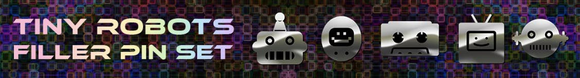 We will be selling this set for $15-20 in the future, so right now you can get it added to your order for free if you back us both! And her robot filler pin sets are being chosen right now on her campaign, so you can decide which robots go on which of her two pin sets!