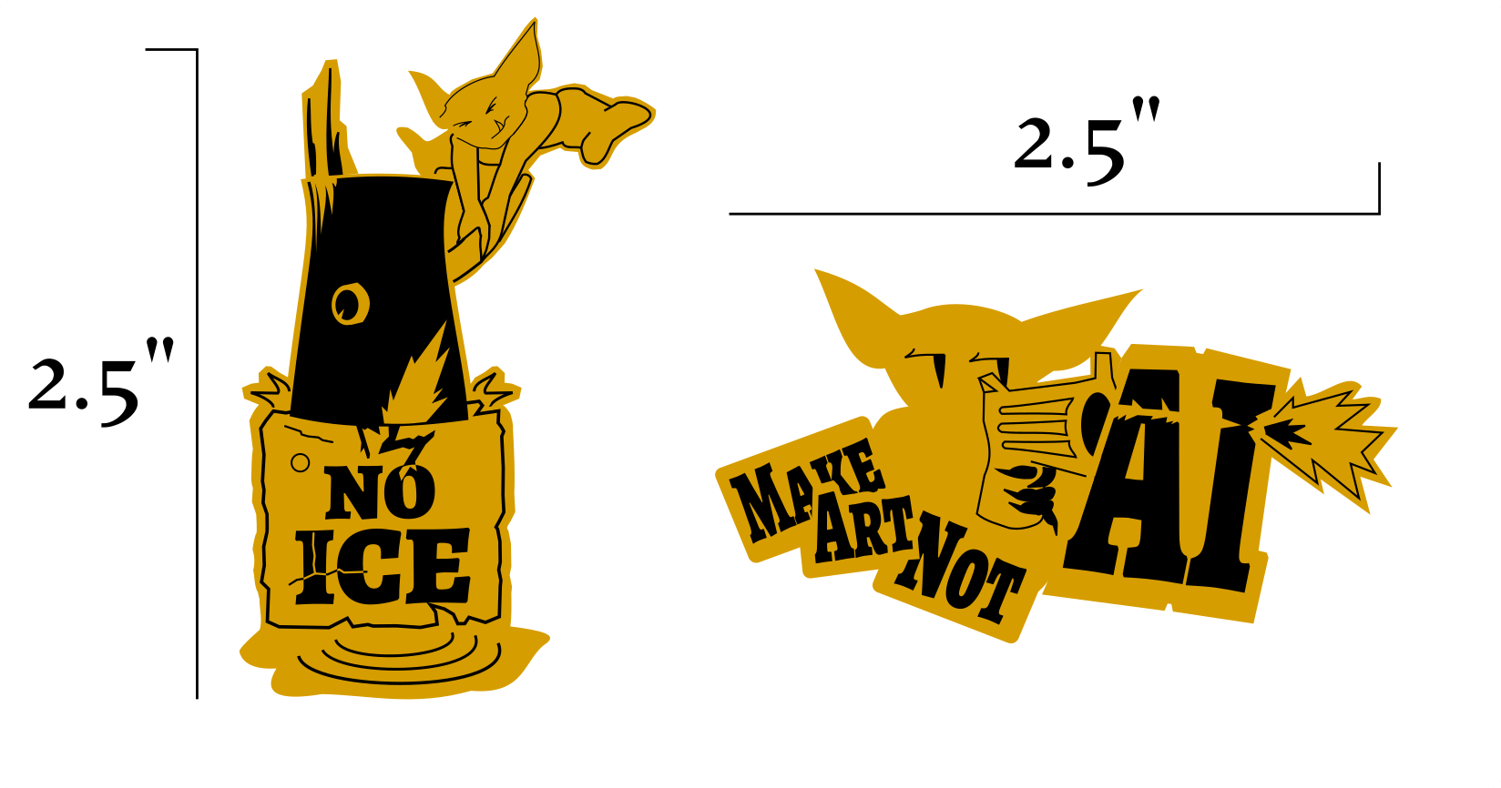 The Make Art Not AI pin is also $15, and is a solid way to support a real human (or goblin) artist (me), and a way to rock merch that shows your stance with human artists, and not the horrible plagiarism machine masquerading as "Artificial Intelligence."