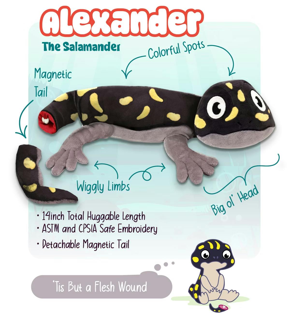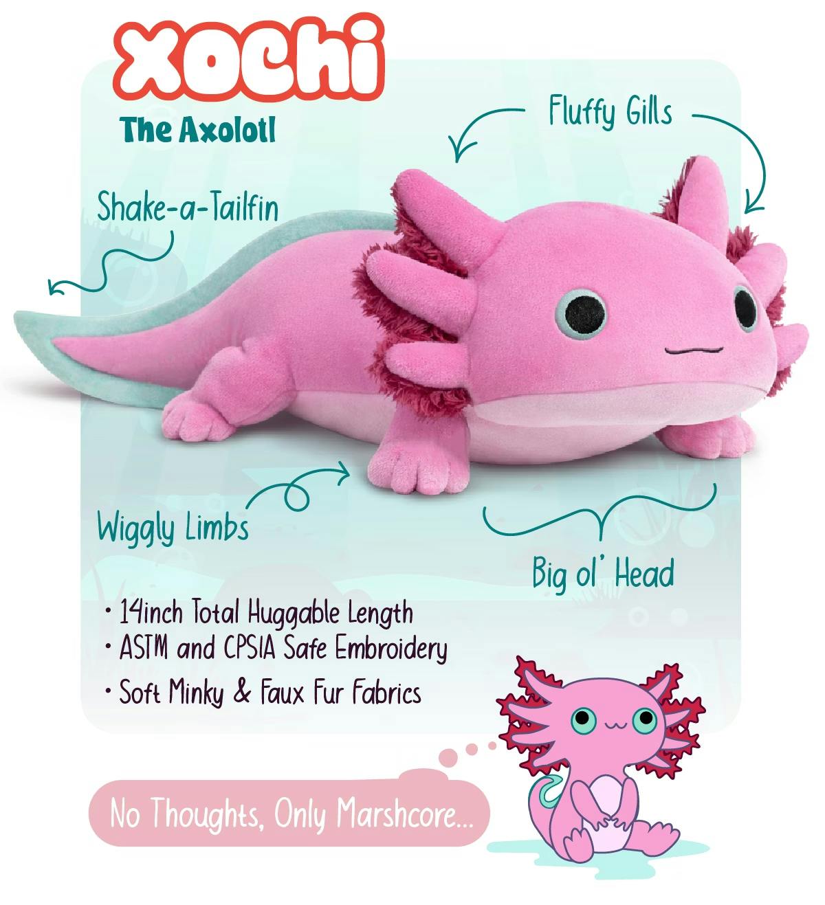 Two brand new plush from CuddleCore Toys! We're excited to introduce you to Xochi the Axolotl and Alexander the Salamander. These super soft new friends are about 14" long with embroidered details.